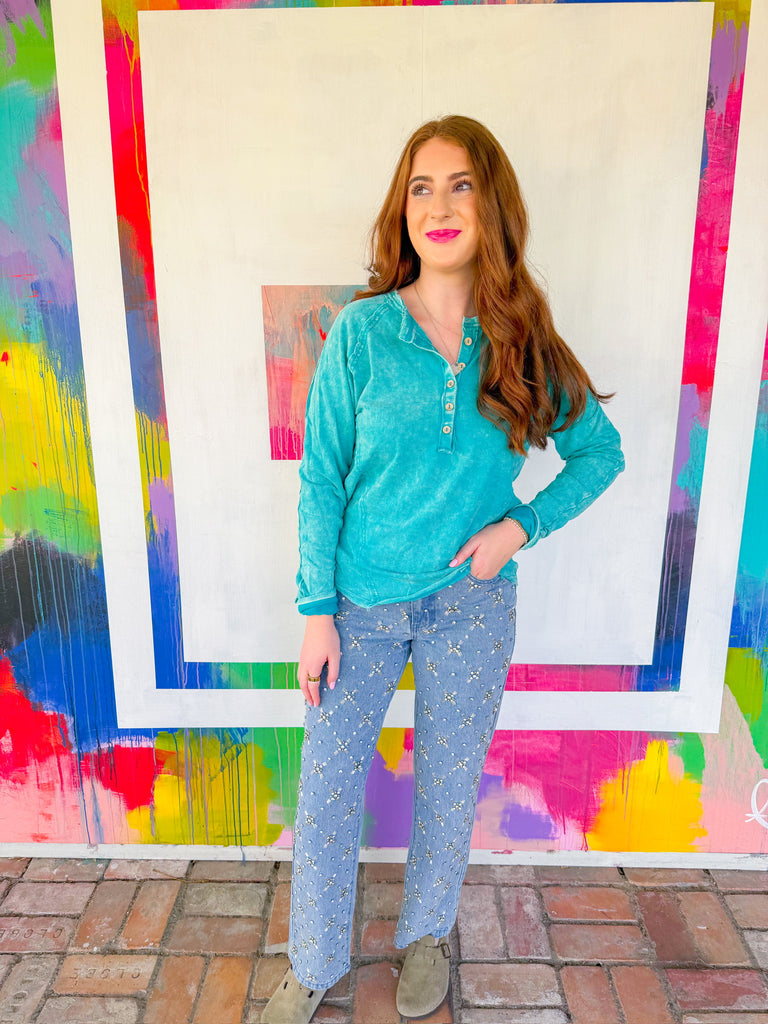 SRTX Call Me Honey Top - Light Teal (TTW-5237Y)