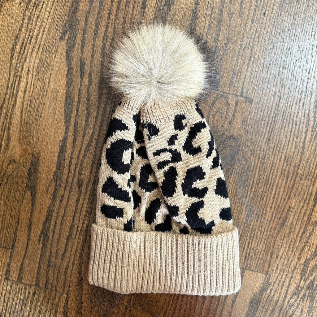 Cheetah Pom Beanie - Bone