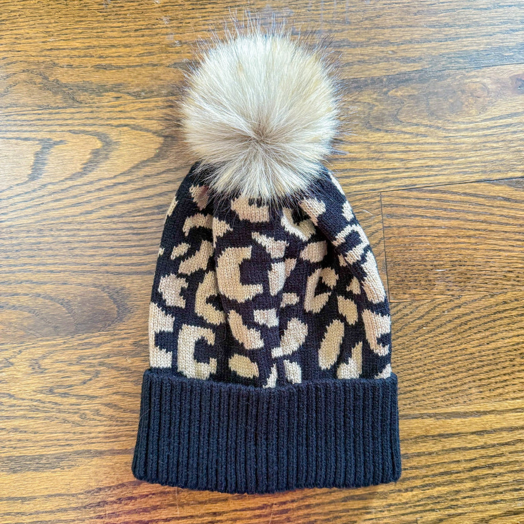Cheetah Pom Beanie - Black