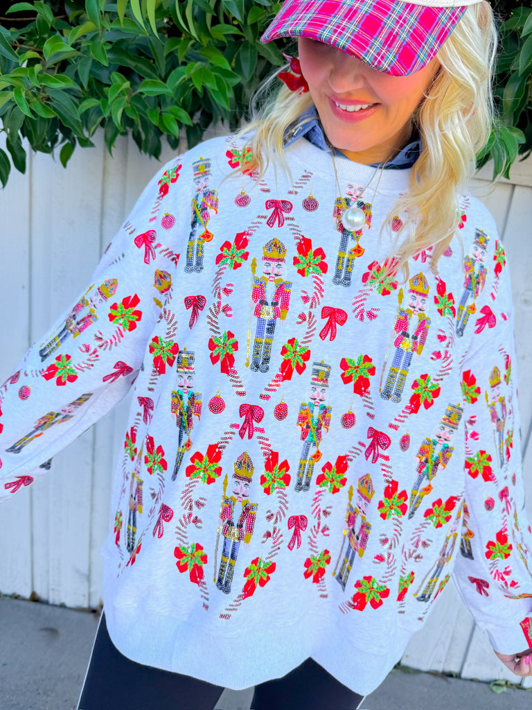Leopard Mock Neck Sweatshirt - Ivory/Light Pink