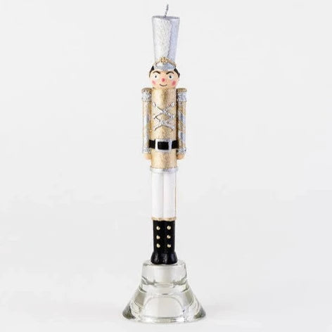 This isn't just a candle; it's a radiant centerpiece that effortlessly transforms your space into a holiday haven. The sleek, tapered design adds a touch of sophistication, while the shimmering gold hue casts a cozy glow, creating an enchanting atmosphere that captures the spirit of the season. Nutcracker candle infuse your home with the magic of the holidays, one golden flicker at a time!