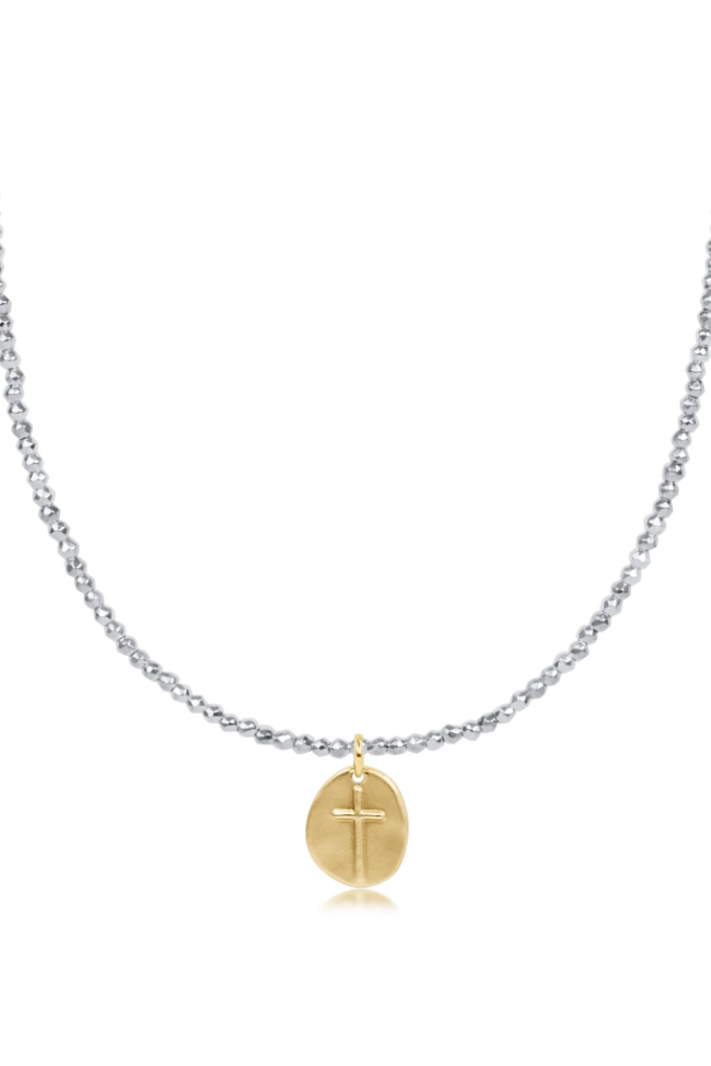 15" Choker Bright Silver Faceted Hematite 2mm Bead - Inspire Small Gold Charm