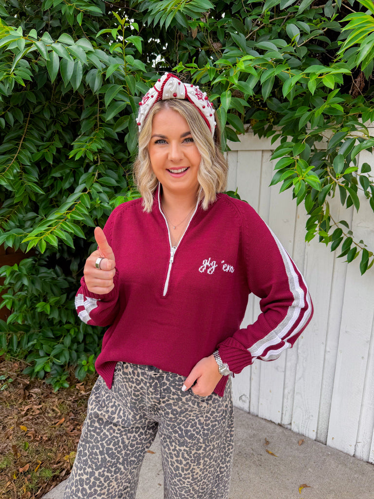 Represent your Aggie pride in style with this classic A&M quarter zip pullover. Crafted in rich maroon, this cozy layer features the iconic A&M logo proudly displayed on the back.