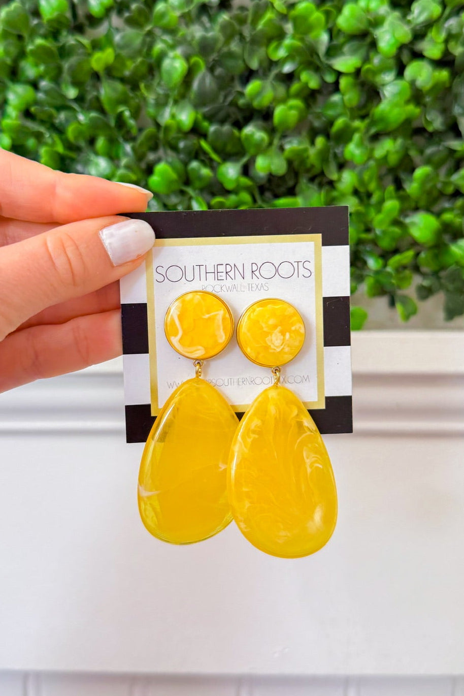 Make a bold move with these golden yellow statement earrings that demand attention. The warm honey tones catch the light beautifully, adding instant personality to any outfit. Whether you're dressing up for a night out or elevating your everyday look, these eye-catching beauties bring that perfect pop of color and confidence.