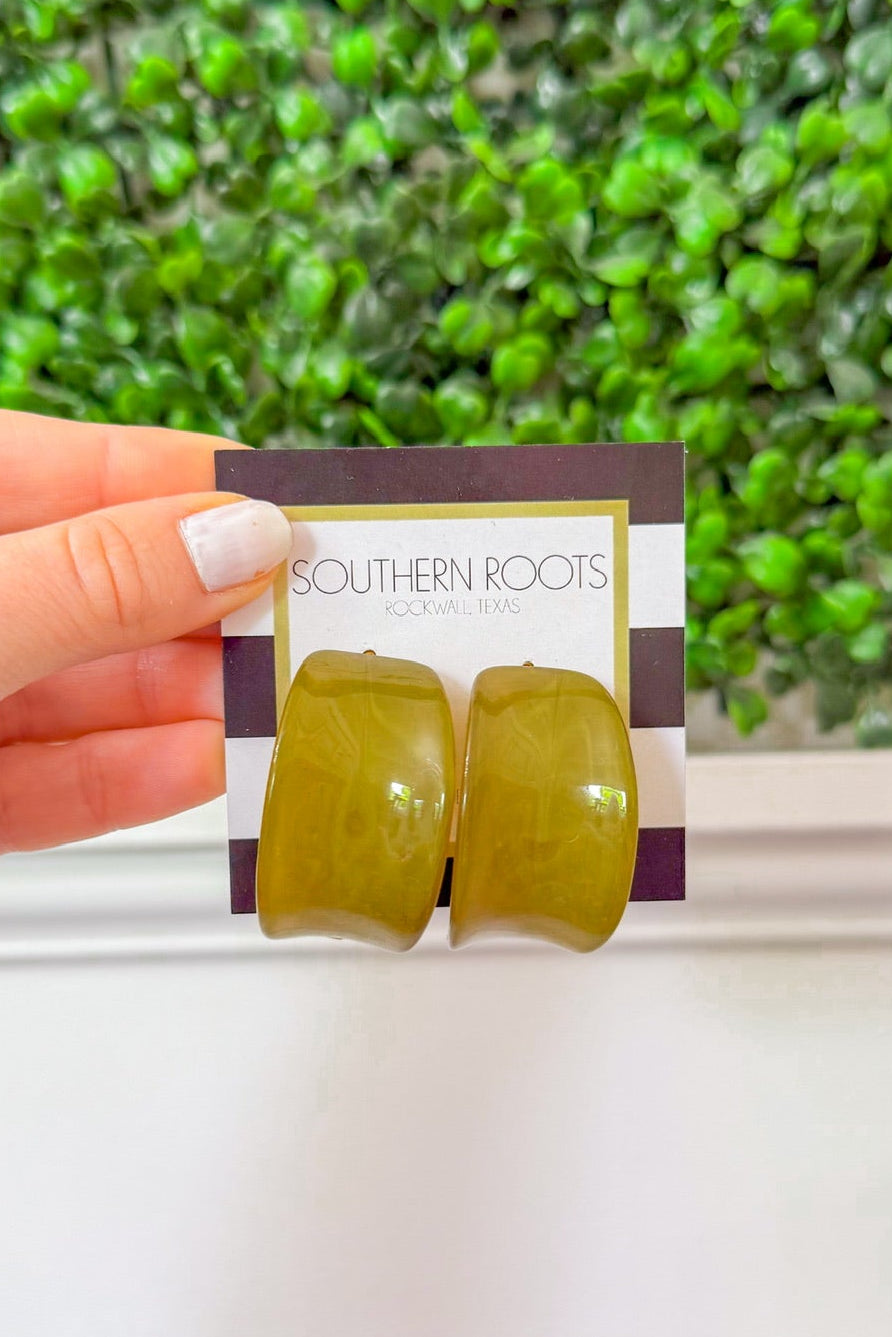 Make a statement with these eye-catching sage green acrylic hoops that bring a pop of color to any outfit. The lightweight design keeps them comfortable for all-day wear, while the bold hue pairs perfectly with everything from casual tees to dressed-up looks. Whether you're channeling boho vibes or modern minimalism, these versatile earrings are your new go-to accessory. Simple, stylish, and oh-so-fun!