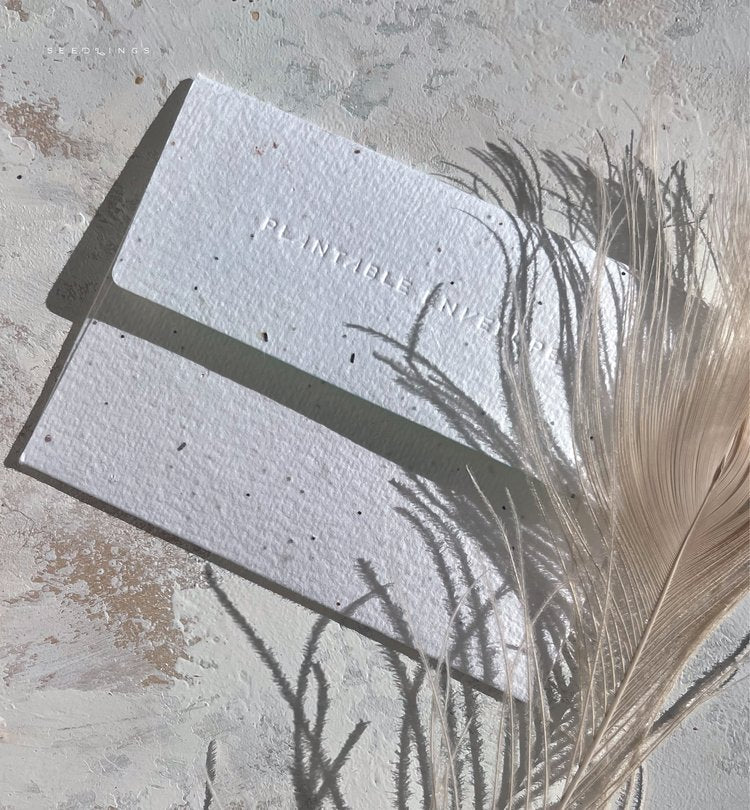All Seedlings greeting cards have a PLANTABLE seed paper envelope which is embedded with wildflower seeds. This seed paper is made of a biodegradable eco-paper created with post-consumer materials - no trees harmed for this paper! When planted, our envelopes compost away leaving only flowers behind. Blank inside, our cards are printed on premium paper and are all accented with foil details.