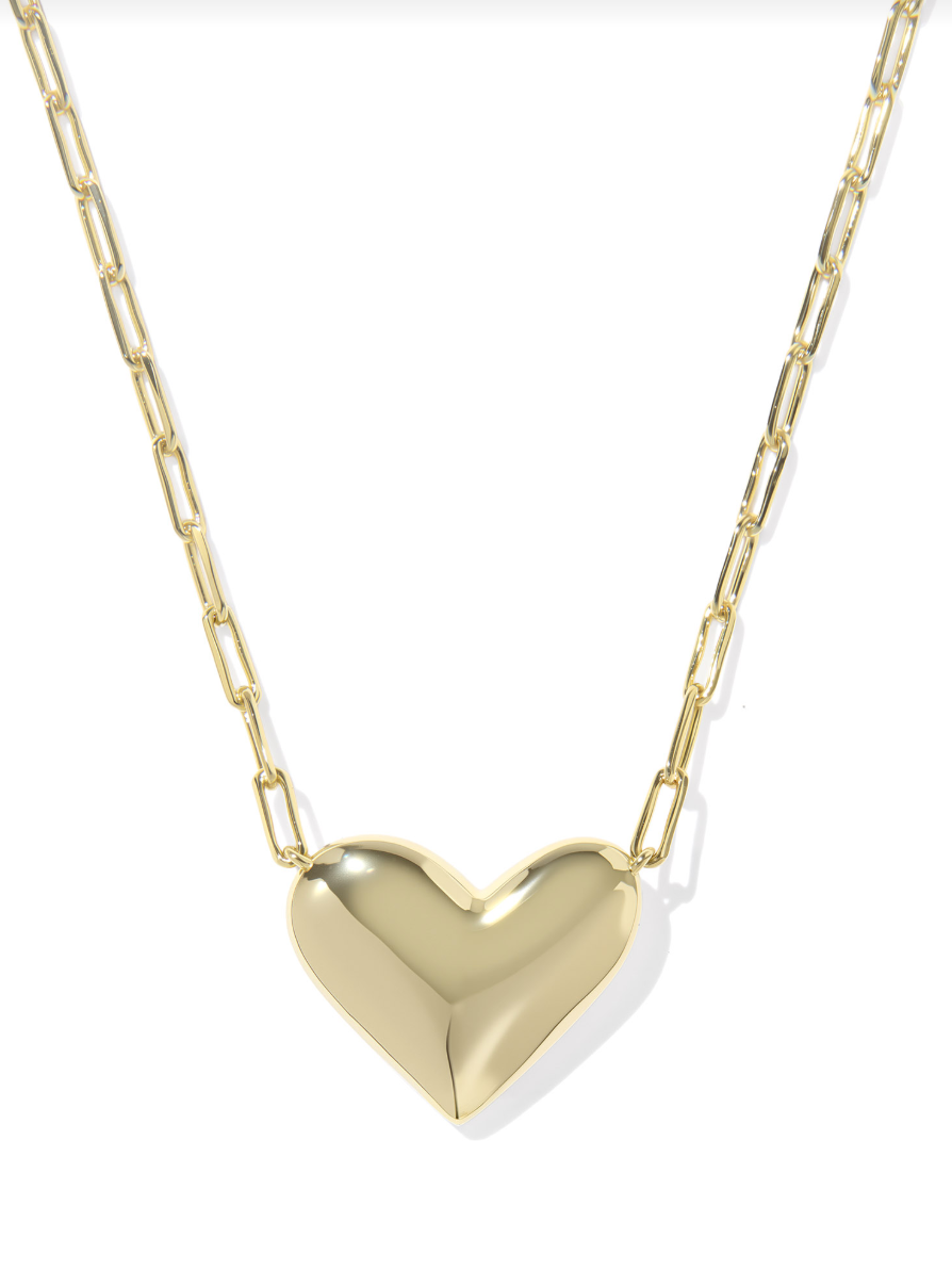 Show off your love for our most romantic style with the Ari Heart Statement Gold Short Pendant Necklace. A maximalist take on our organic heart shape set on a paperclip chain, this necklace brings sweetness to any ensemble.
