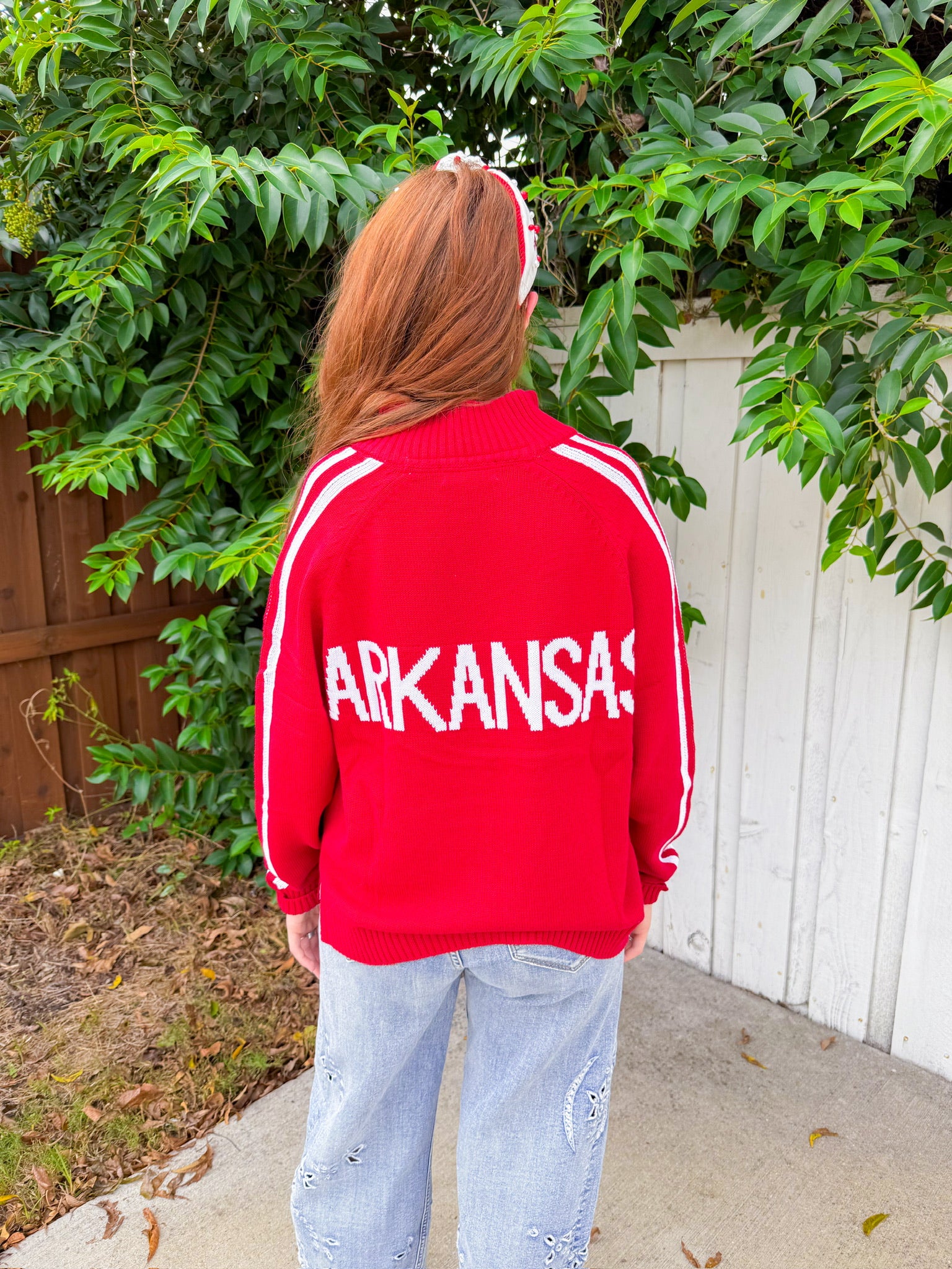 Represent the Natural State in style with this cozy Arkansas quarter zip pullover. Featuring bold Arkansas lettering across the chest, this comfortable pullover is perfect for game days, casual outings, or showing your state pride.