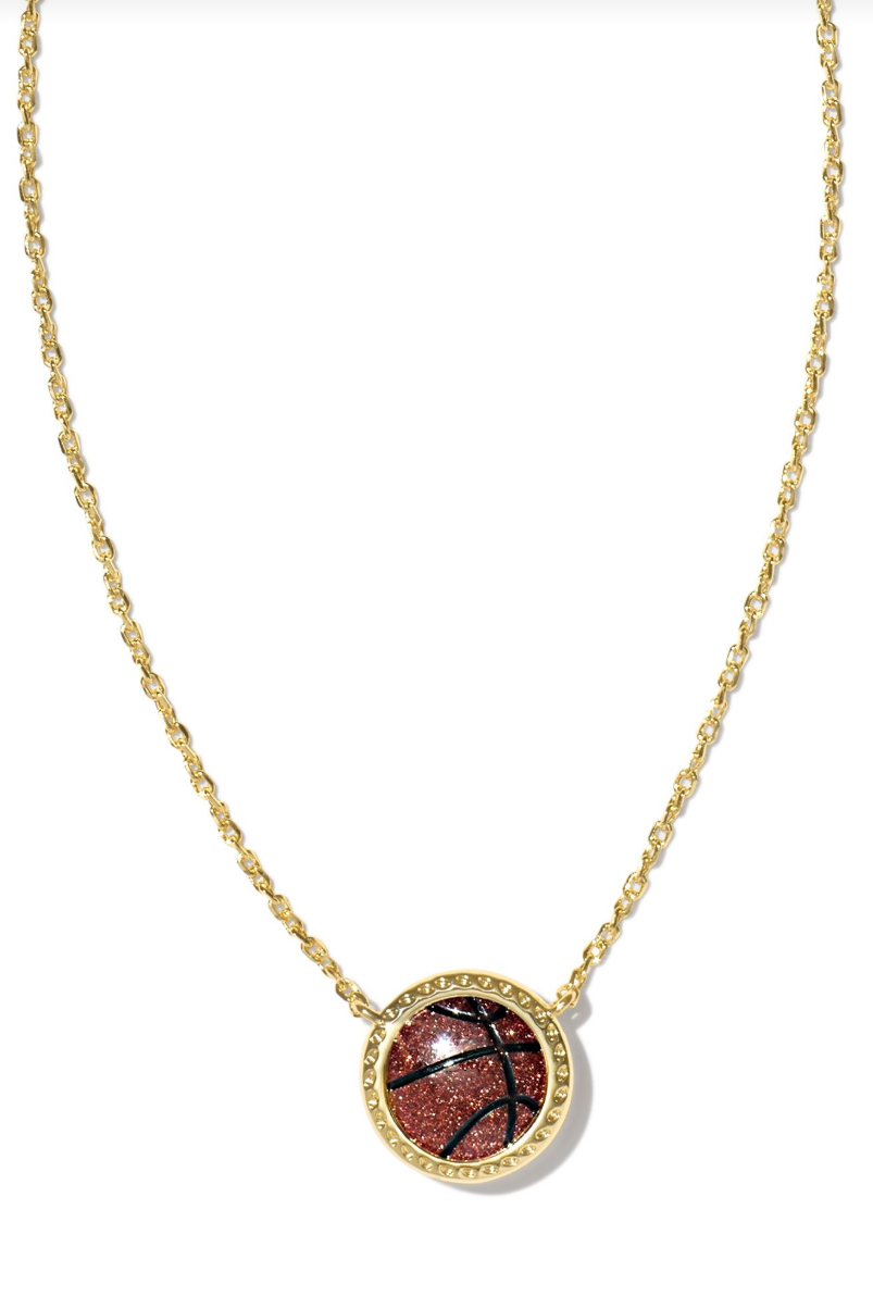 No matter the team you cheer for, be the most stylish fan in the stands wearing the Basketball Gold Short Pendant Necklace in Orange Goldstone. This basketball pendant shimmers with its orange goldstone, perfect for making game day your fashion moment.