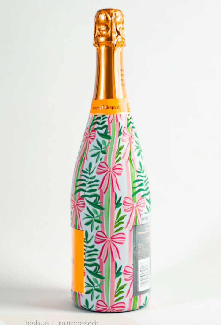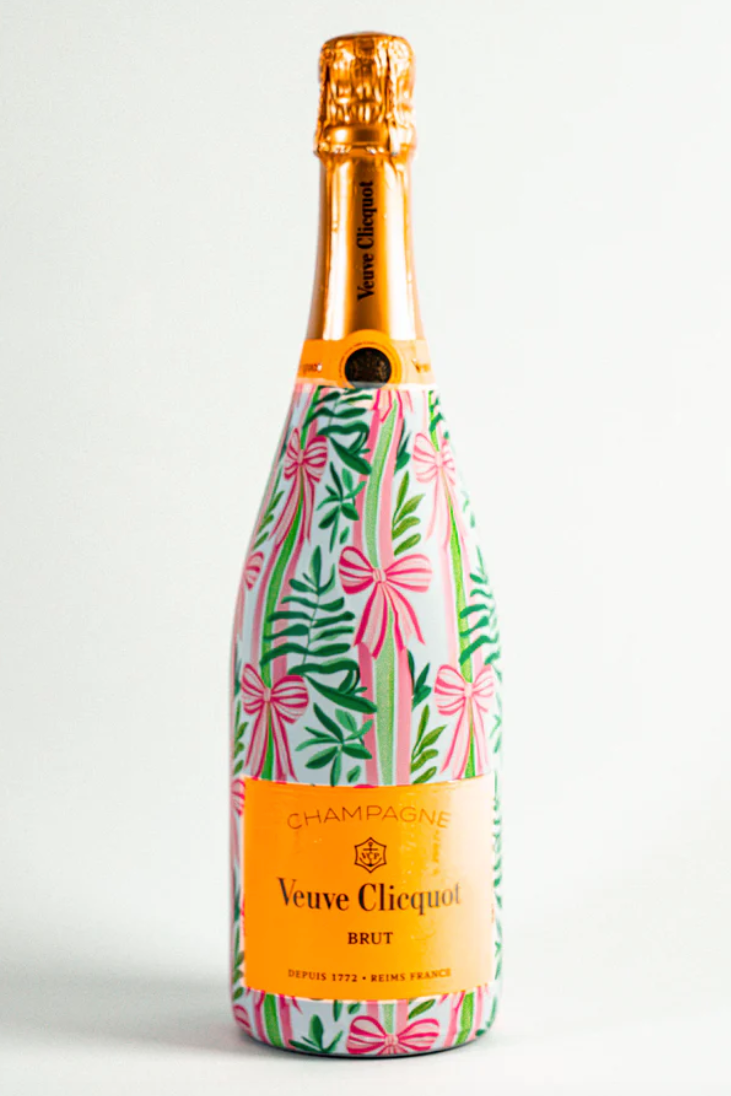 Transform your champagne bottle into an eye catching masterpiece with Beau Bottles wraps! Whether gifting or celebrating, this elegant wrap seamlessly blends with the bottle, adding a touch of sophistication to any occasion. Simply slip the wrap over the specified bottle, use a hairdryer to shrink the wrap into place, and enjoy a smooth professional finish! Designed specifically for Veuve, it turns an ordinary bottle into an extraordinary statement piece!