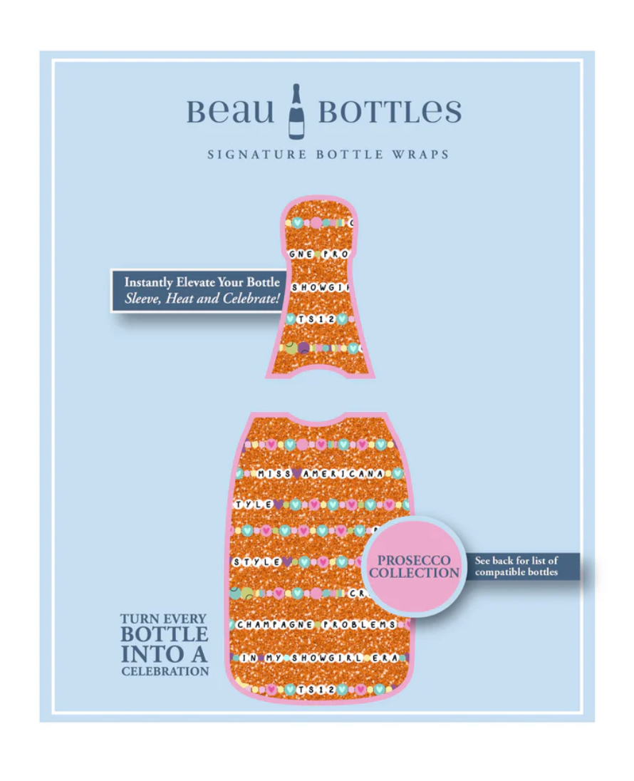 Transform your champagne bottle into an eye-catching masterpiece with Beau Bottles wrap. Whether gifting or celebrating, this elegant wrap seamlessly blends with the bottle, adding a touch sophistication to any occasion. Simply slip the wrap over the bottle, use a hairdryer or heat gun to shrink it into place, and enjoy a smooth, professional finish.