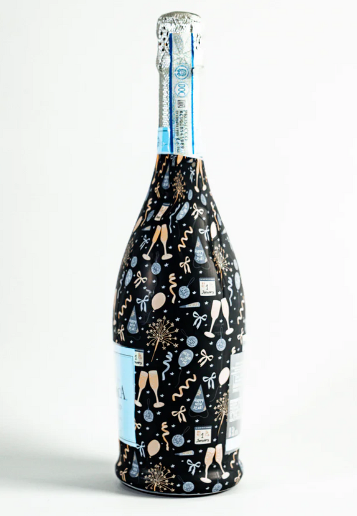 Transform your champagne bottle into an eye-catching masterpiece with Beau Bottles wrap. Whether gifting or celebrating, this elegant wrap seamlessly blends with the bottle, adding a touch sophistication to any occasion. Simply slip the wrap over the bottle, use a hairdryer or heat gun to shrink it into place, and enjoy a smooth, professional finish.