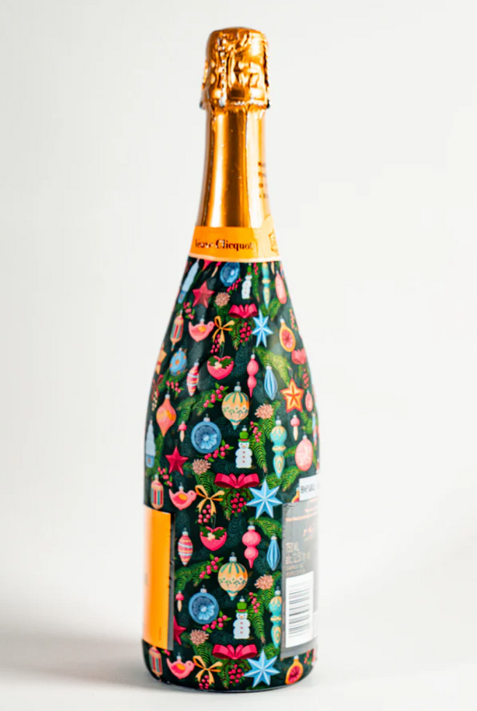 Transform your champagne bottle into an eye catching masterpiece with Beau Bottles wraps! Whether gifting or celebrating, this elegant wrap seamlessly blends with the bottle, adding a touch of sophistication to any occasion. Simply slip the wrap over the specified bottle, use a hairdryer to shrink the wrap into place, and enjoy a smooth professional finish! Designed specifically for Veuve, it turns an ordinary bottle into an extraordinary statement piece!