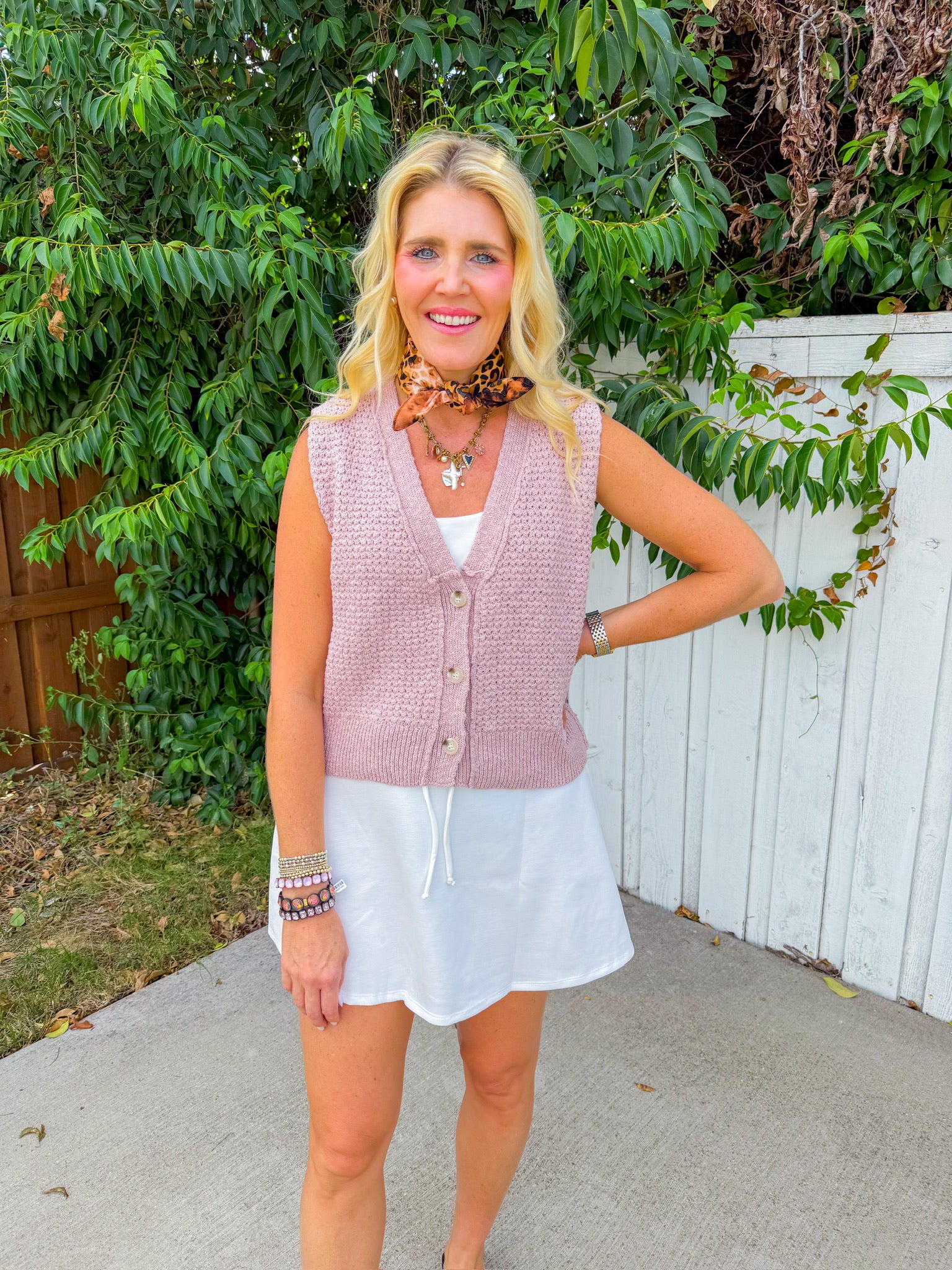 This Beautiful Night Vest in dusty rose is your new layering bestie. Lightweight and comfy, it adds just the right touch of cozy without weighing you down.