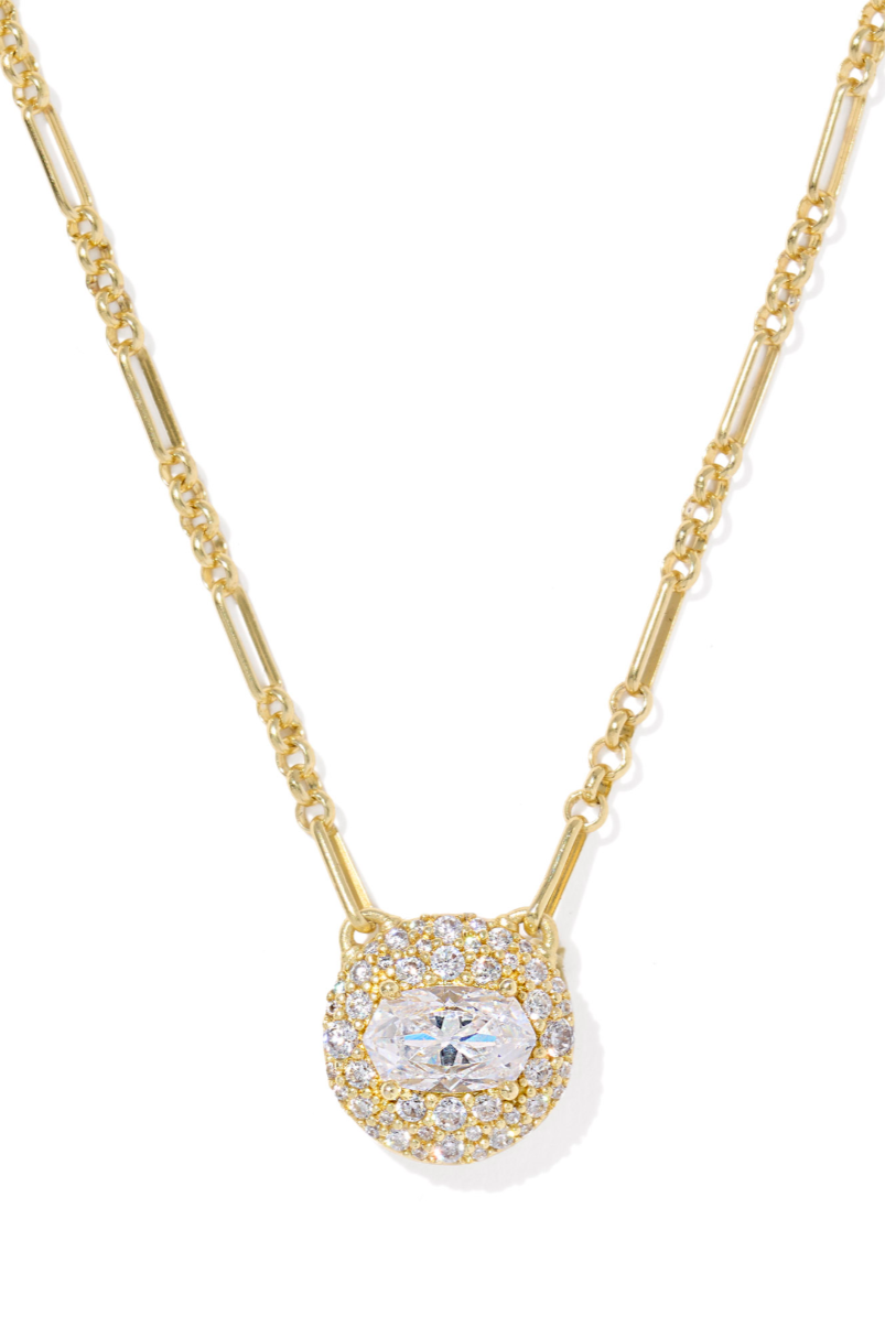 Bella Short Pendant Necklace - Gold/White Metal CZ