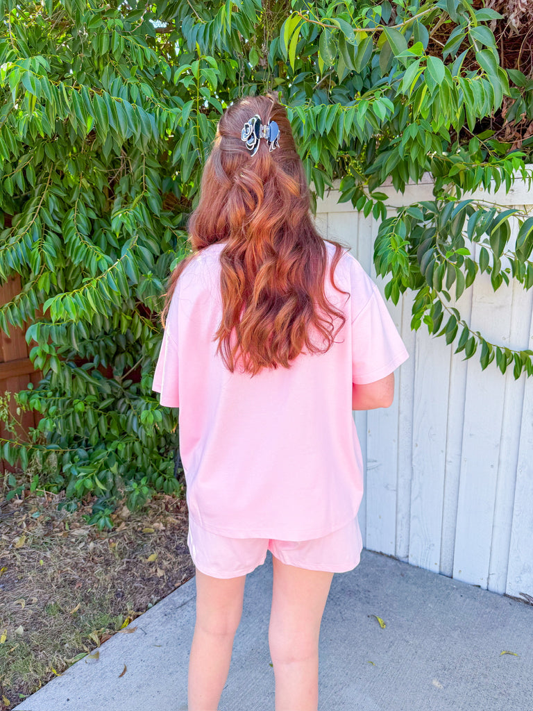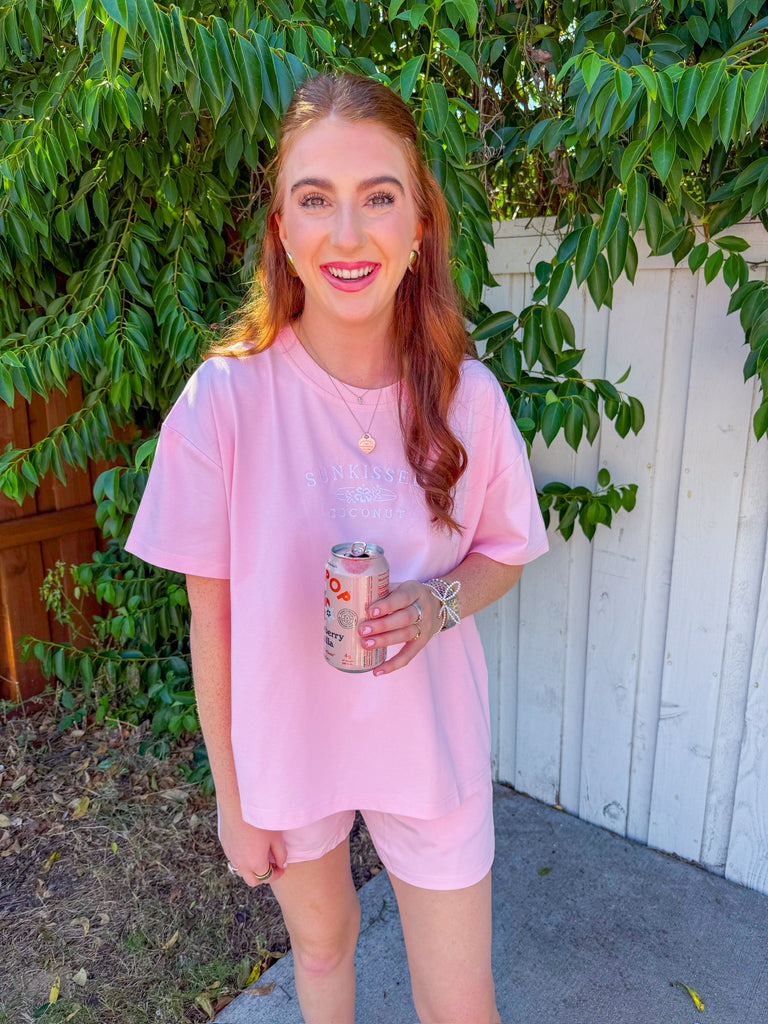 Bring a burst of summer to your outfit with the Blair Tee in vibrant pink. Featuring a playful "Sunkissed Coconut" graphic across the front, this tee adds a fun, tropical vibe to any casual look.