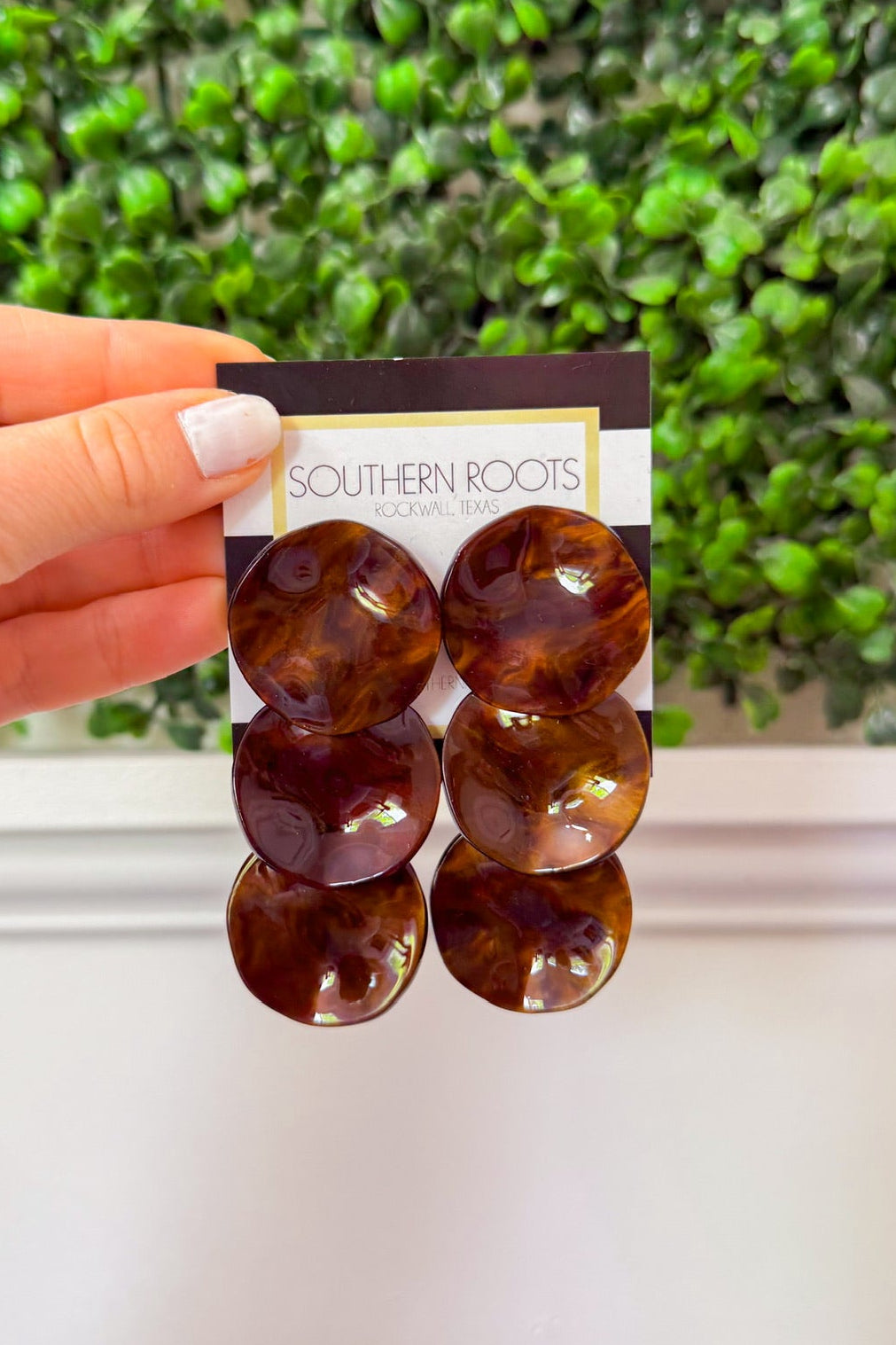 Jet off in style with these charming tiered acrylic circle dangle earrings. Lightweight and eye-catching, they feature stacked geometric circles that catch the light beautifully.