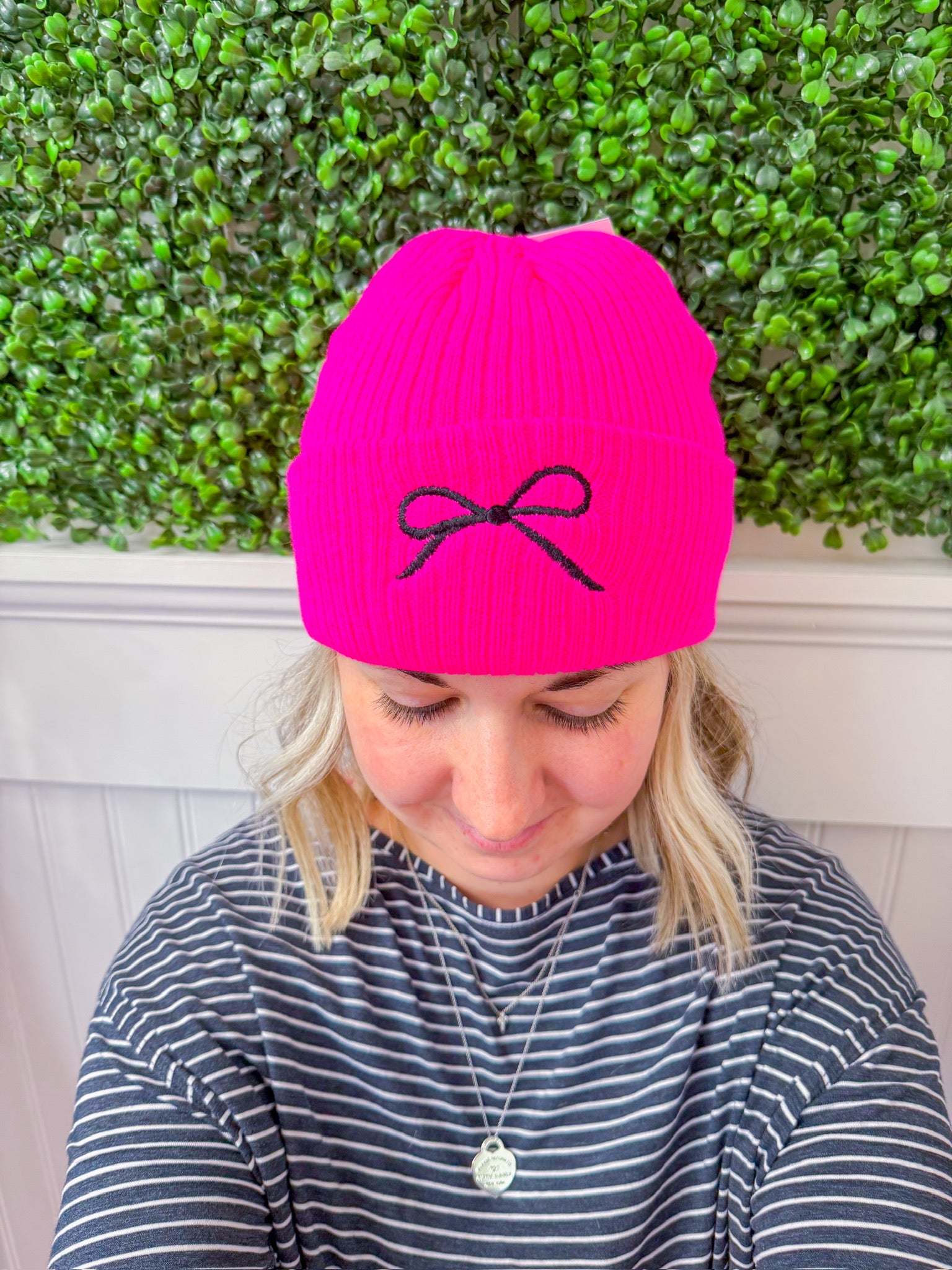 Cozy up in style with this charming bow beanie. Perfect for chilly days, this playful knit keeps you warm while adding a sweet, feminine touch to any outfit. The adorable bow detail makes it an instant favorite—whether you're running errands or settling in for the season. A wardrobe essential that's as cute as it is comfortable.