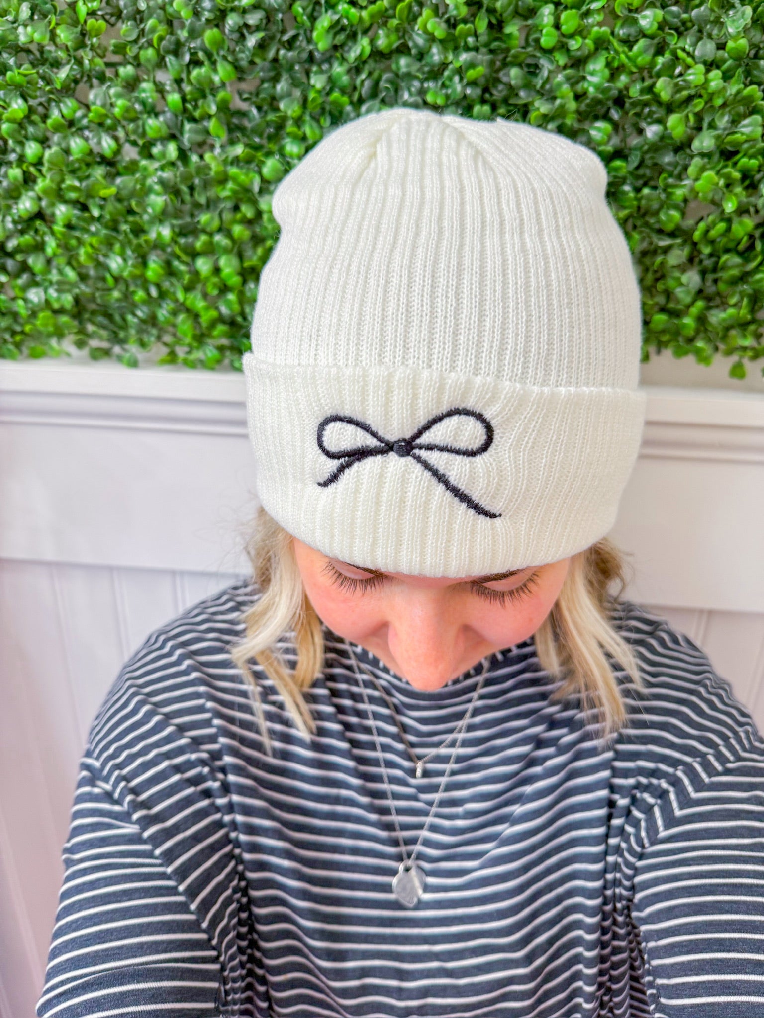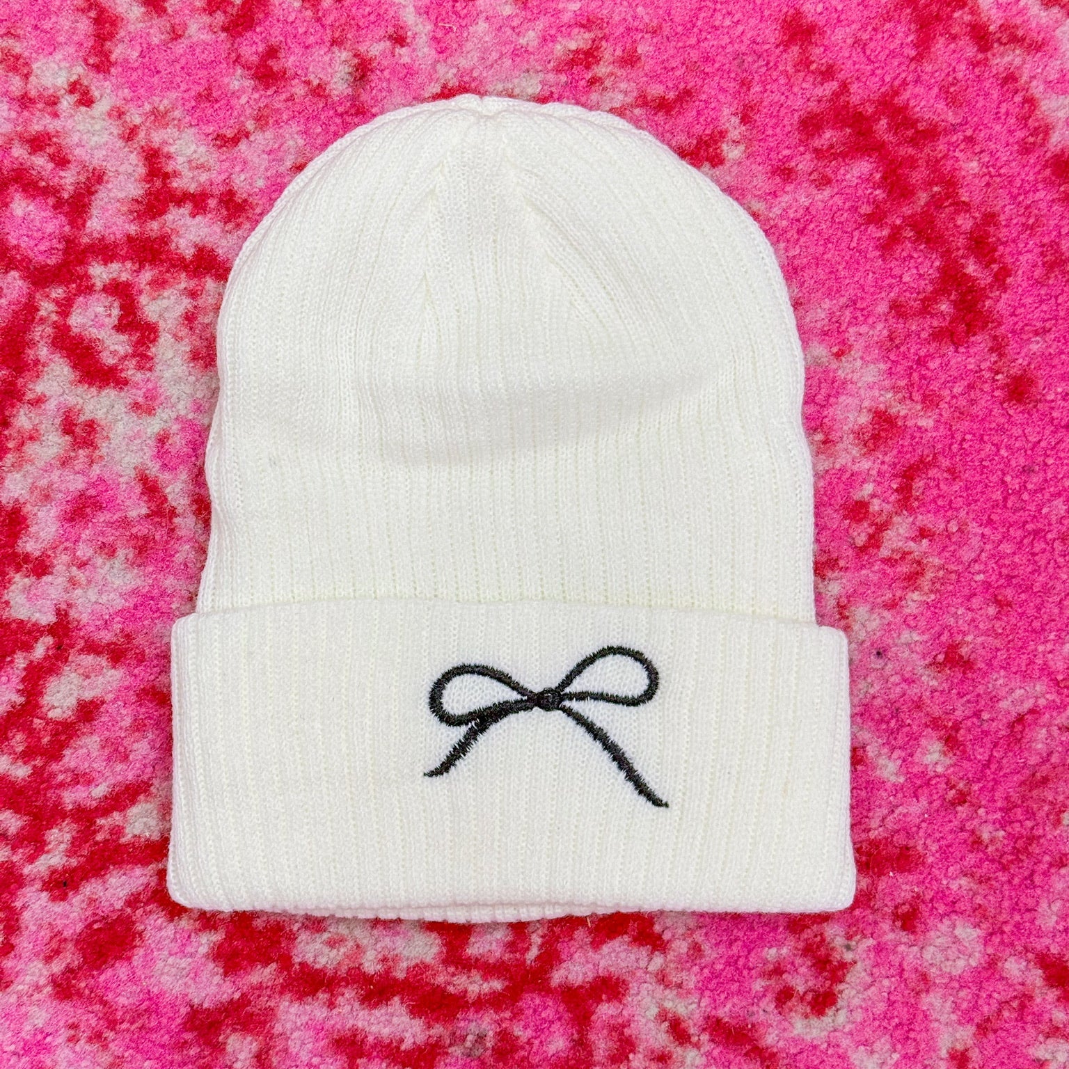 Cozy up in style with this charming bow beanie. Perfect for chilly days, this playful knit keeps you warm while adding a sweet, feminine touch to any outfit. The adorable bow detail makes it an instant favorite—whether you're running errands or settling in for the season. A wardrobe essential that's as cute as it is comfortable.