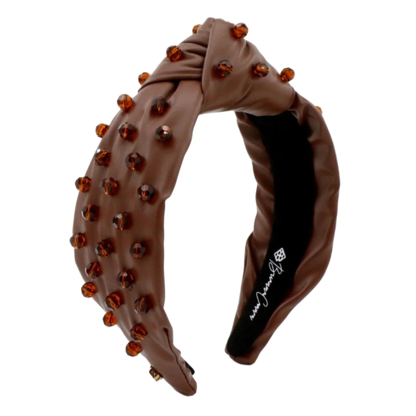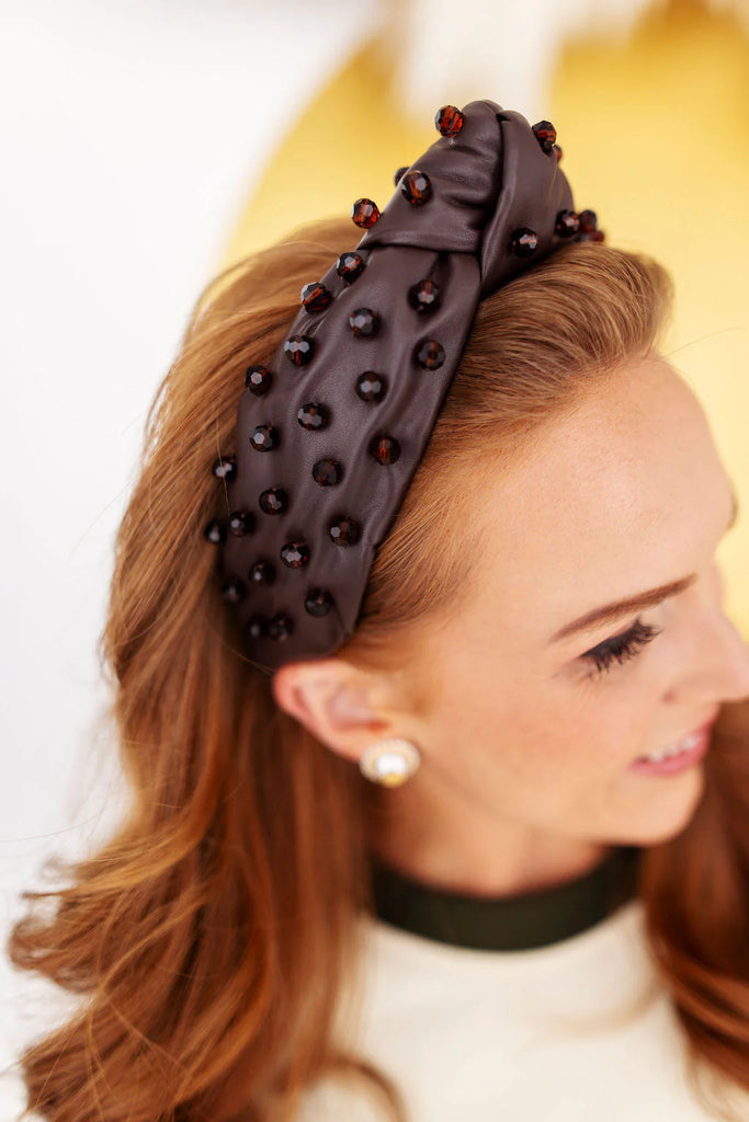 - Brown Vegan Leather Headband with Hand-Sewn Glass Beads