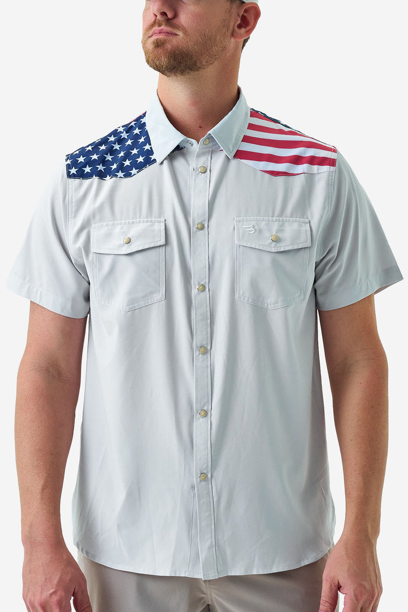 The Performance Western Shirt, crafted for the modern individual who values both style and functionality. Made from a premium blend of 90% Polyester and 10% Spandex, this button-up offers lightweight performance and superior comfort. Constructed from a lightweight performance fabric, designed to keep you cool and comfortable all day long. The breathable, quick-dry, and moisture-wicking properties ensure you stay dry and fresh, while the four-way stretch fabric provides maximum flexibility and mobility.