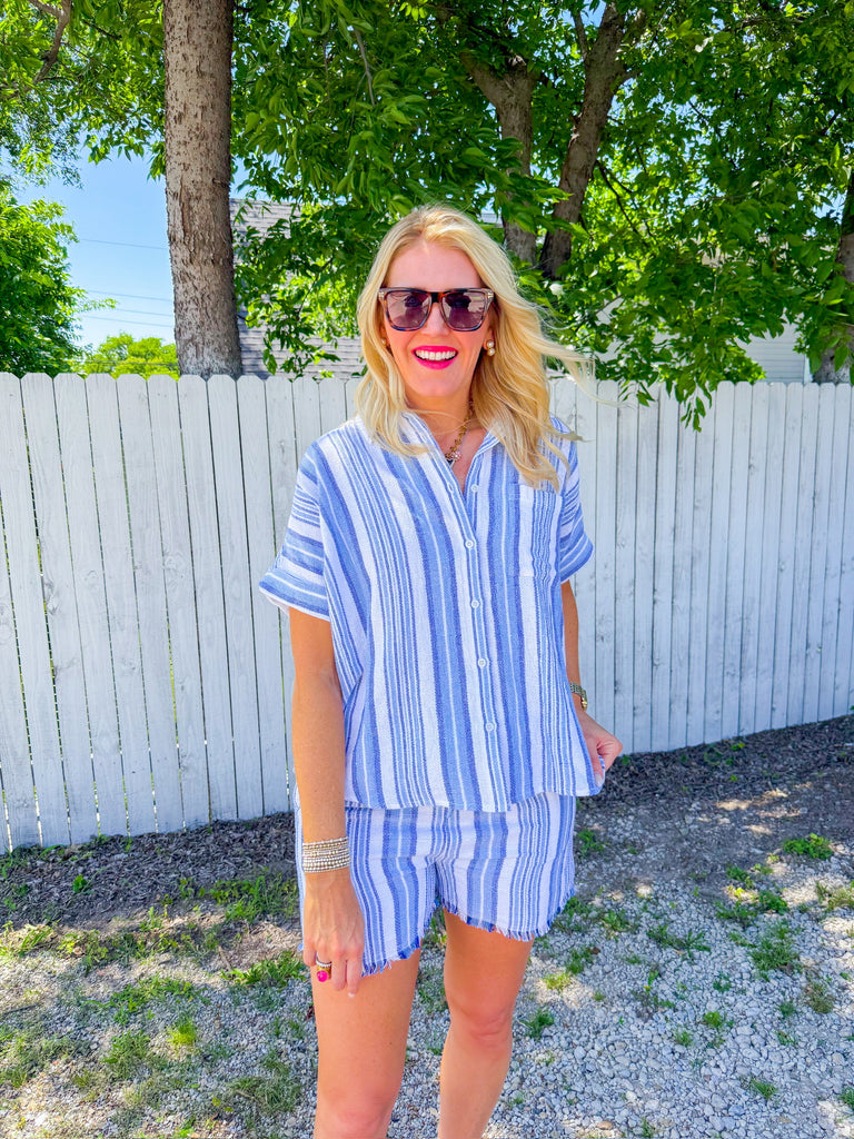 The Cabana Court Shorts feature the same soft, lightweight stripe as the matching top. With an easy pull-on fit and relaxed feel, they’re ready for pool days or casual strolls.