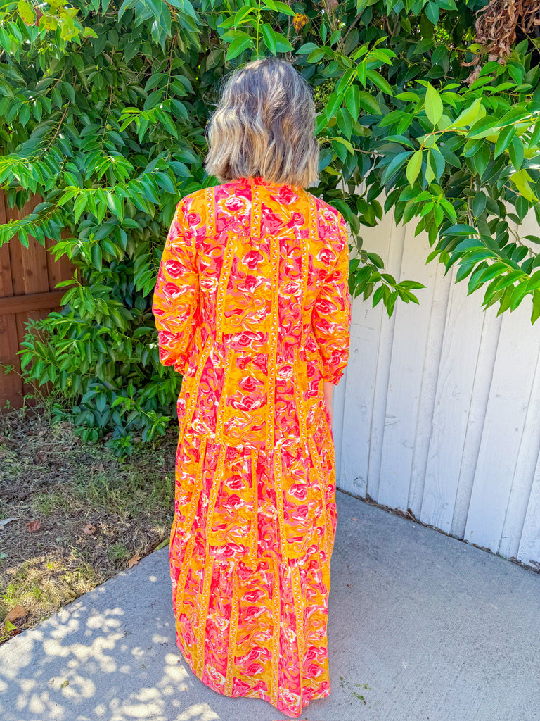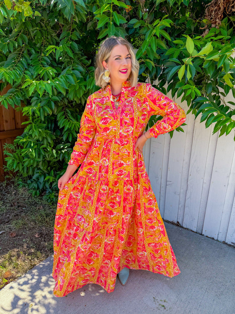 Cafe Chic Maxi Dress - Yellow/Pink