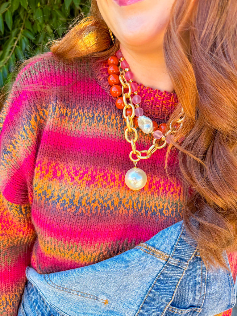 A closet staple you'll be wearing on repeat! This space dye knit is just what you need to build your year 'round wardrobe. Finish out warm days styled as a sweater dress with cowboy boots, or under jackets with jeans when the temperatures drop.