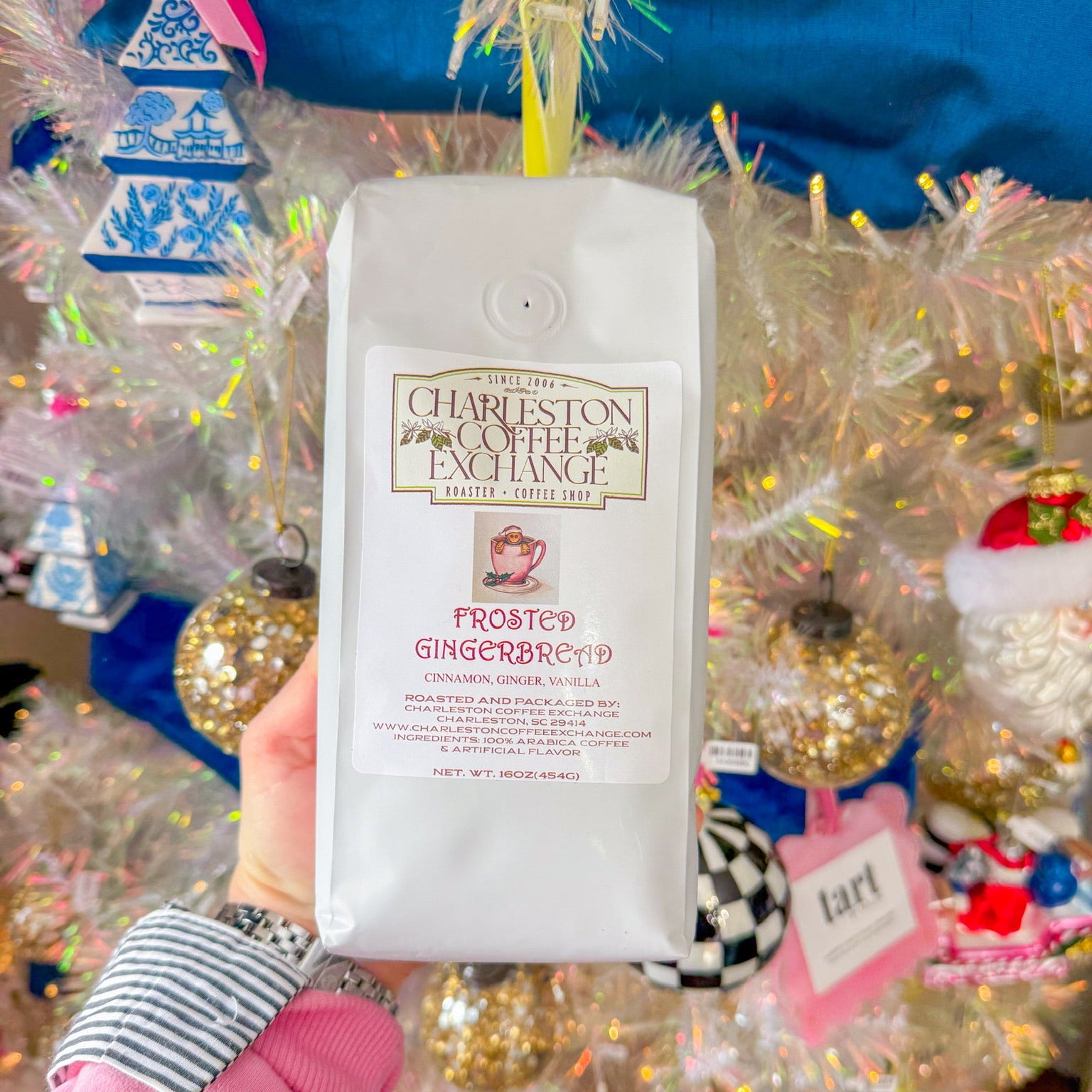 Brew up the holidays with Charleston Coffee Exchange's Frosted Gingerbread blend—a delightful 1lb bag of premium ground coffee beans that brings festive spice and warmth to your morning cup. Featuring notes of ginger, cinnamon, and subtle sweetness, this seasonal favorite transforms your daily ritual into a cozy celebration.Savor the magic in every sip.