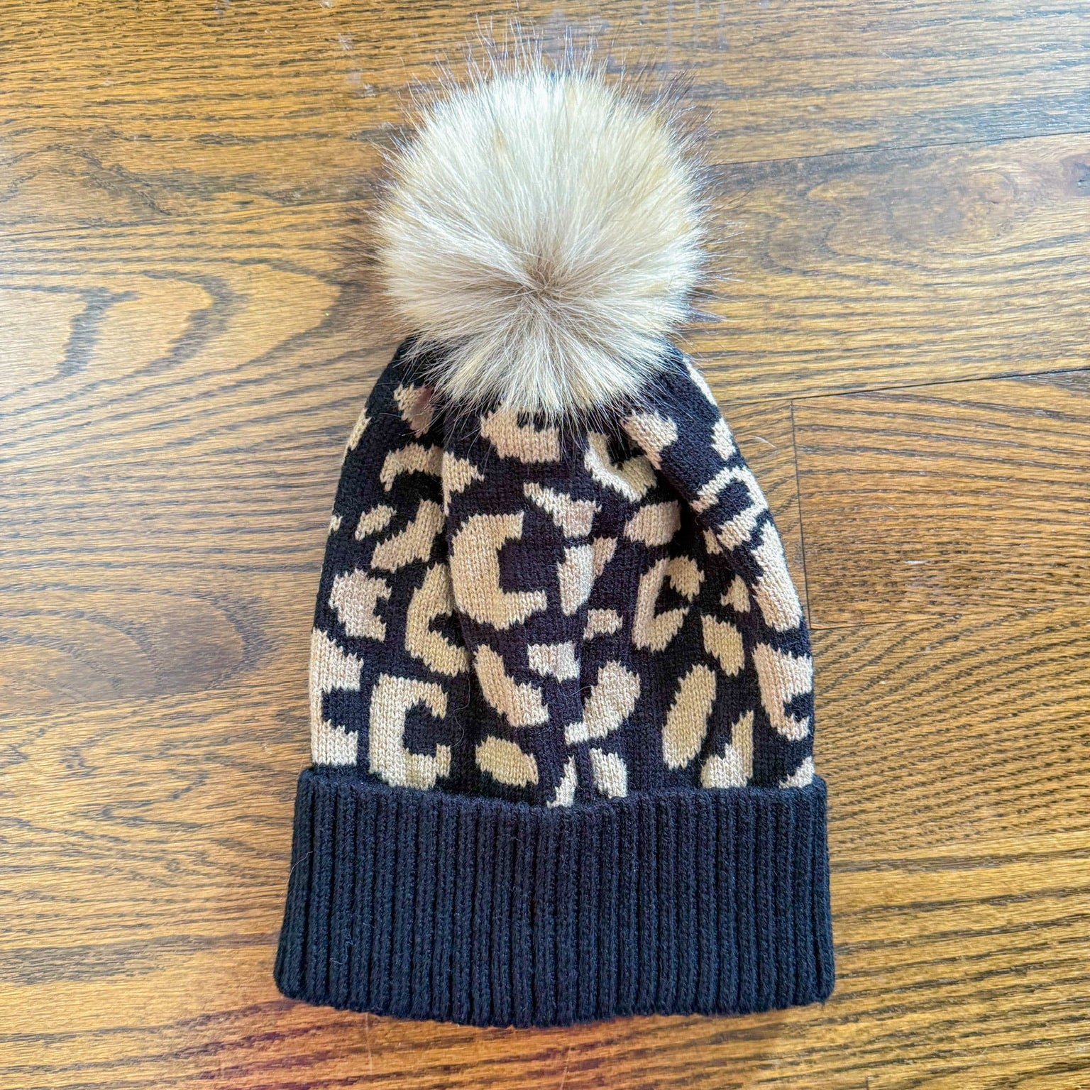 Embrace your wild side with this cheetah print pom pom beanie! Featuring a bold animal print design paired with a cozy knit construction, it's the perfect accessory to add attitude to any winter look.