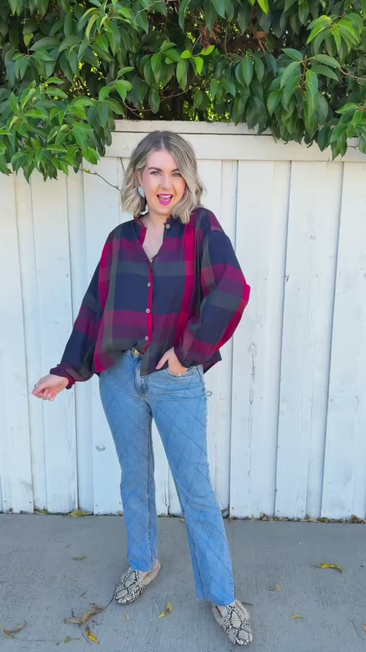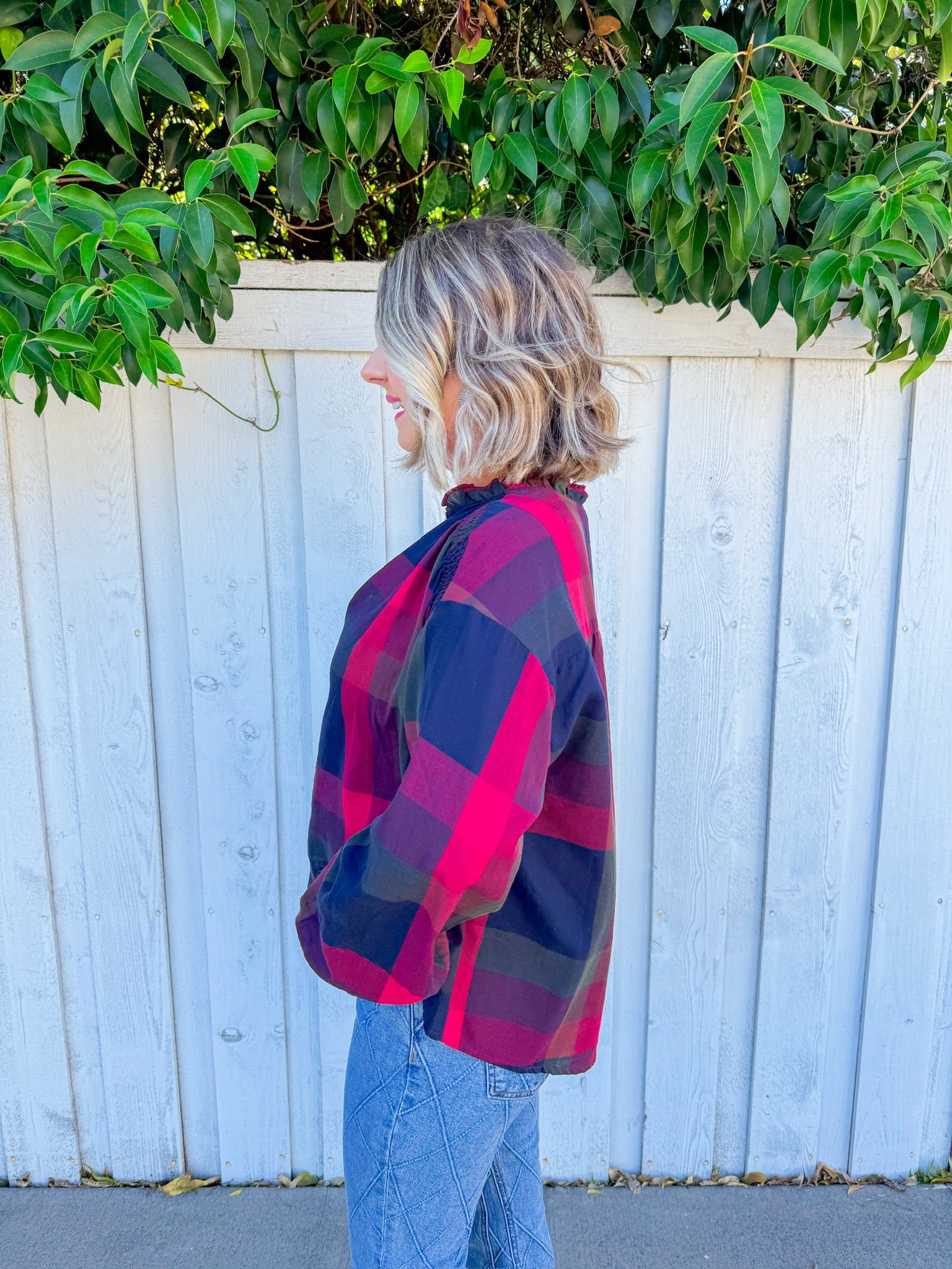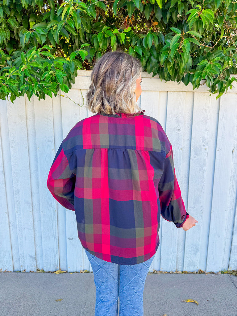 Cinnamon Spice Top - Multi Warm up your wardrobe with this charming plaid blouse in rich red, black, and dark green tones.