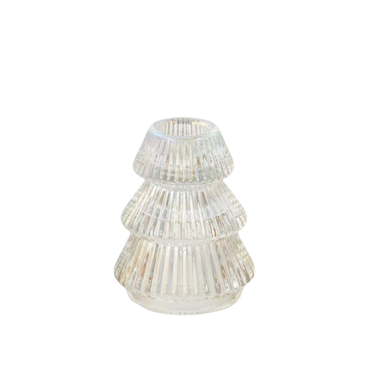 Light up your holiday décor with this charming clear tree taper candle holder! Standing at 3.25 inches tall, this elegant piece brings festive sparkle to any room. The transparent design showcases the warm glow of your favorite taper candles while adding a touch of seasonal magic to mantels, tables, and shelves.