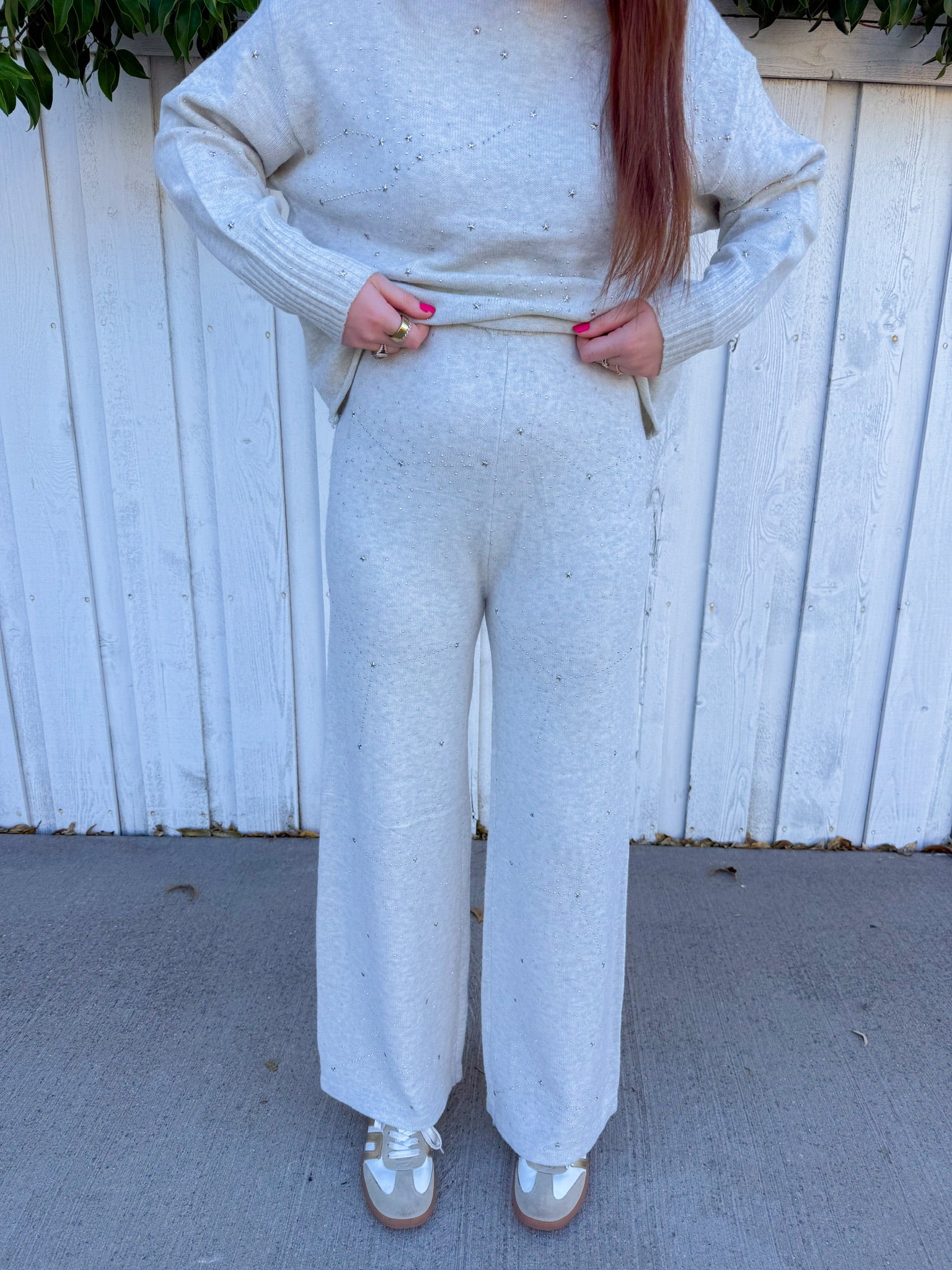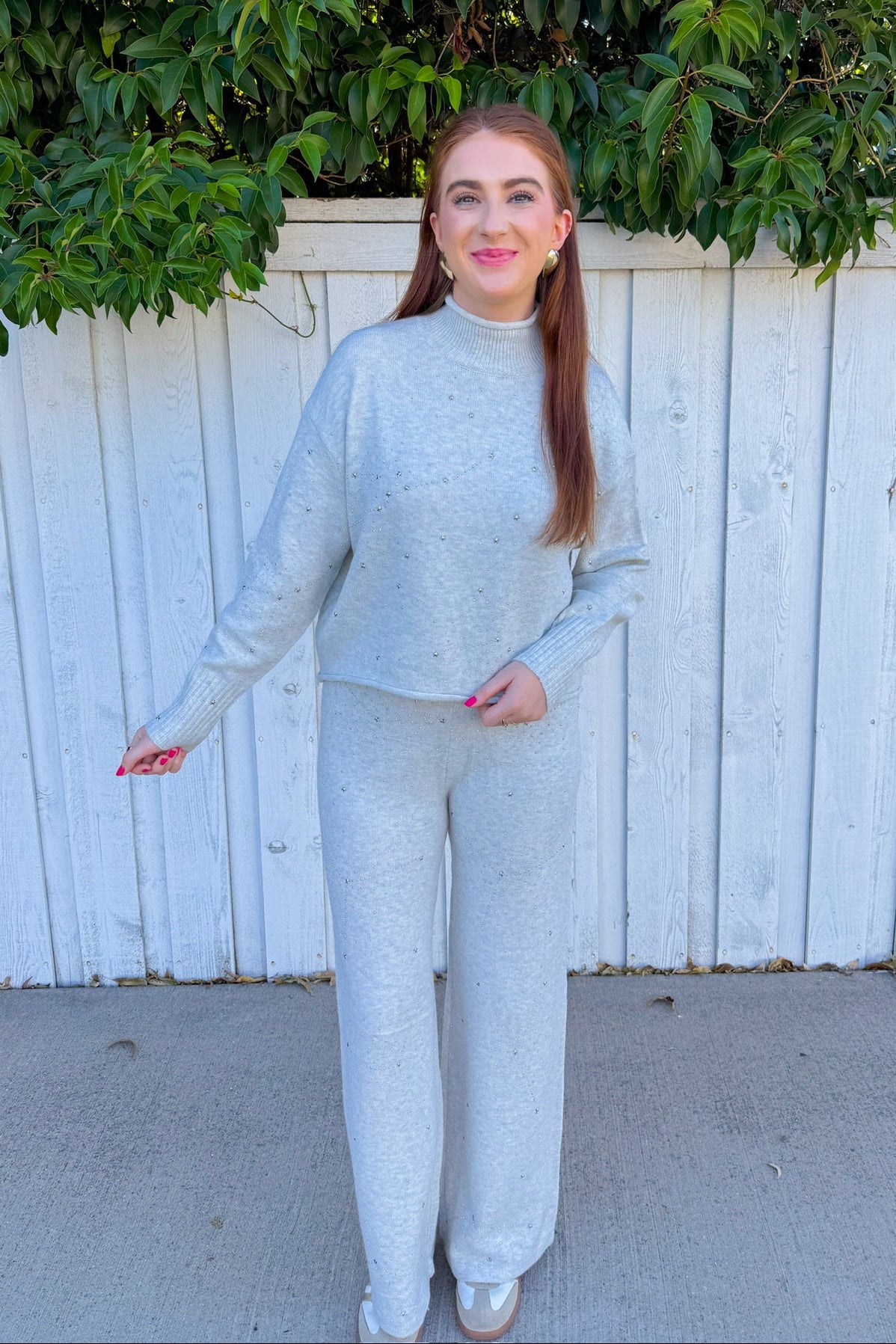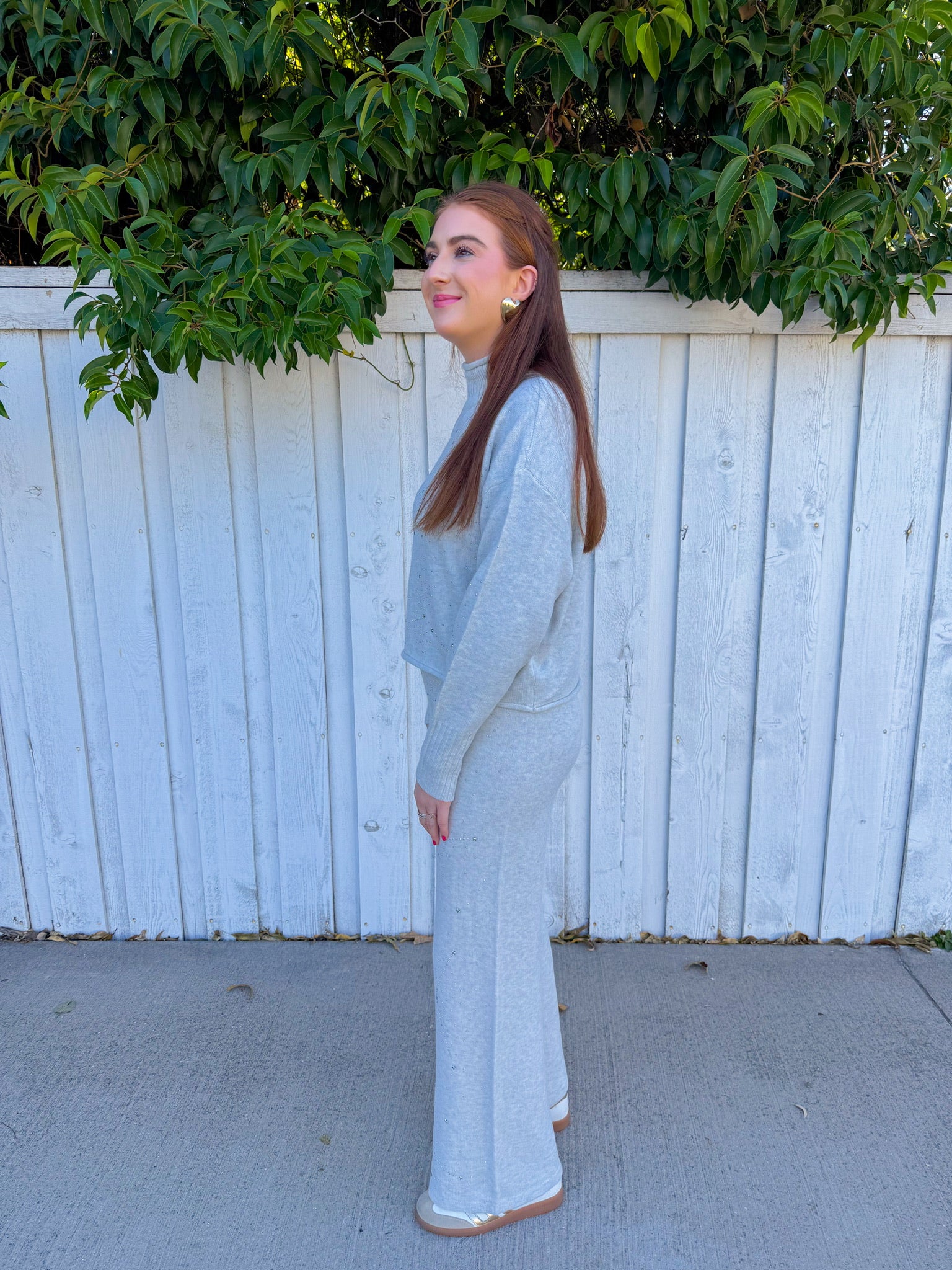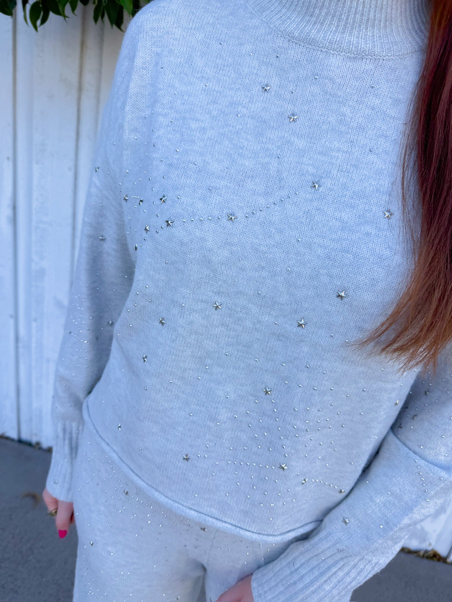 Reach for the stars with this celestial-inspired heather grey set, adorned with constellation studded embellishments that catch the light with every move. Perfect for stargazers and dreamers who love a touch of cosmic charm in their everyday style. A playful nod to the night sky that's anything but ordinary.