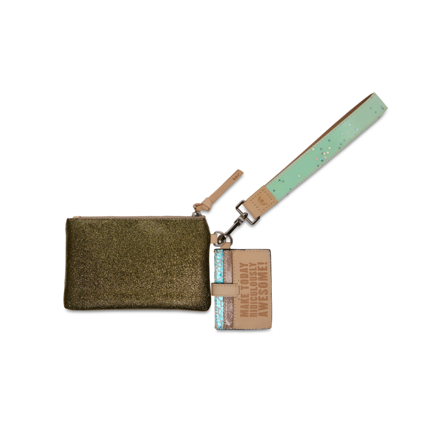 The Combi, a combination of on-the-go accessories, is a new way to carry your keys, cards, and the small stuff together or separately. This embroidered wristlet wallet includes a pocket pouch, secure card slot wallet and fits comfortably around your wrist.