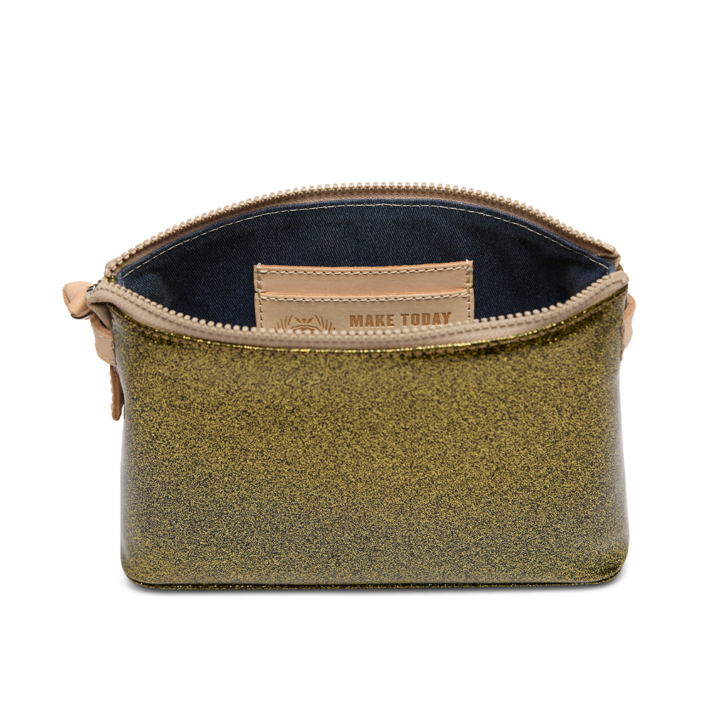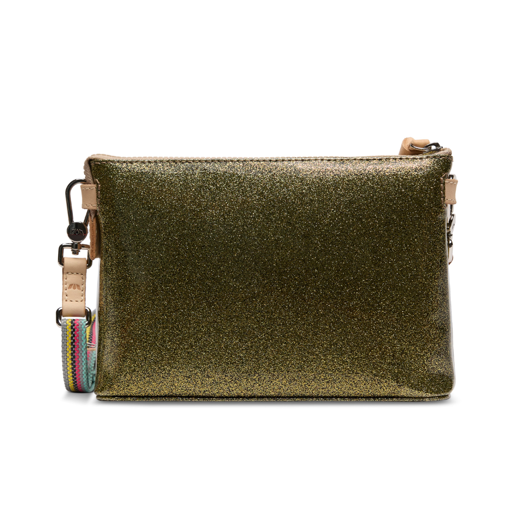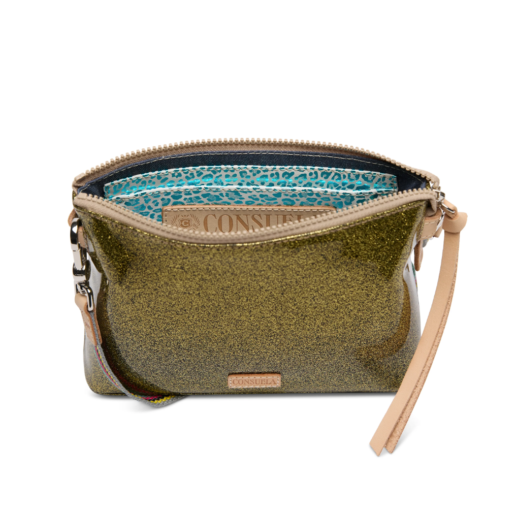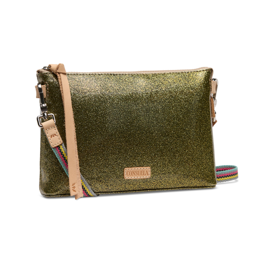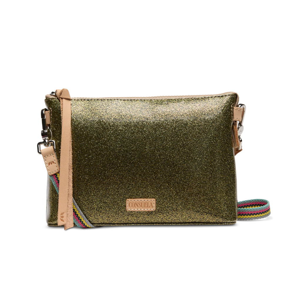 - 8 ¼" (W at the base), 9 ¼” (W at the top) x 5 ¾” (H) x 2" (D), 14 ½”-27 ½” adjustable crossbody strap drop