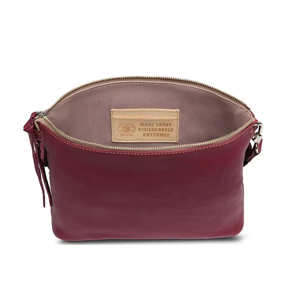 - Includes a Plum leather bag tag secured with a hand-woven friendship bracelet