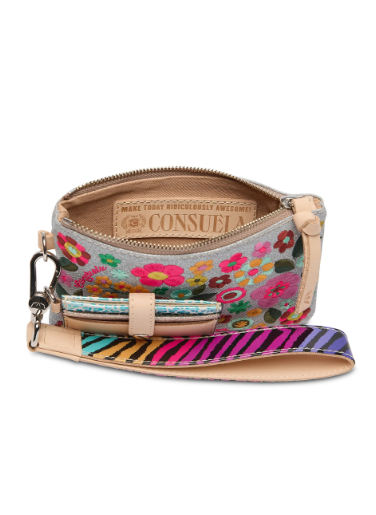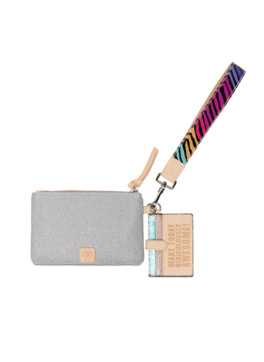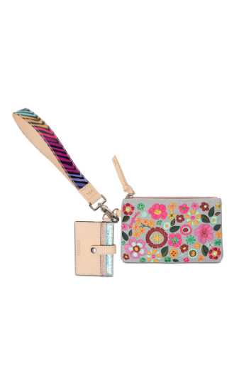 The Combi, a combination of on-the-go accessories, is a new way to carry your keys, cards, and the small stuff together or separately. This embroidered wristlet wallet includes a pocket pouch, secure card slot wallet and fits comfortably around your wrist.