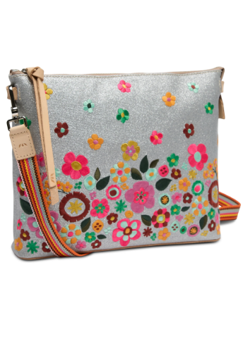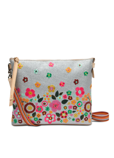 This embroidered crossbody bag is ready to take on the day with an adjustable strap and two interior pockets. Crafted with a roomy open interior, the Downtown Crossbody can carry the essentials and more.