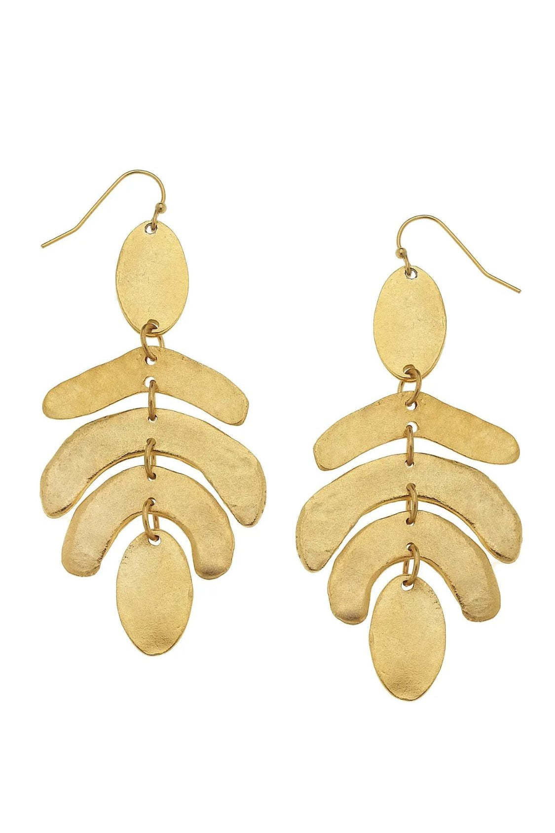 Experience the elegance of Susan Shaw's Gold Oval and Curve Contemporary Art Inspired Earrings. With dimensions of 1.375" width x 3.125" length, these dangle earrings showcase an artistic blend of sophistication and modern design. Each piece is meticulously handcrafted by skilled artisans in San Antonio, TX, reflecting the brand's commitment to quality and excellence. These earrings not only draw inspiration from Northern European styling but also from the desires of Susan Shaw's customers, resulting in a unique, exquisite design. Adorn yourself with these contemporary art-inspired earrings and elevate your style to new heights.