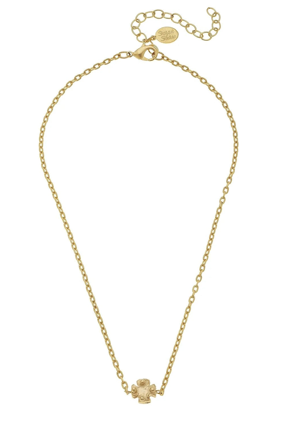 Experience the elegance of Susan Shaw's Mini Gold Cross on Chain Necklace. This pendant/charm necklace, handcrafted by seasoned artisans in our San Antonio boutique workshop, encapsulates over three decades of unique and exquisite design. Inspired by Northern European styling and American-made materials, this necklace is a testament to the high standards of quality we uphold. Whether for yourself or a gift, it's more than just jewelry, it's a piece of art that carries a part of our story.