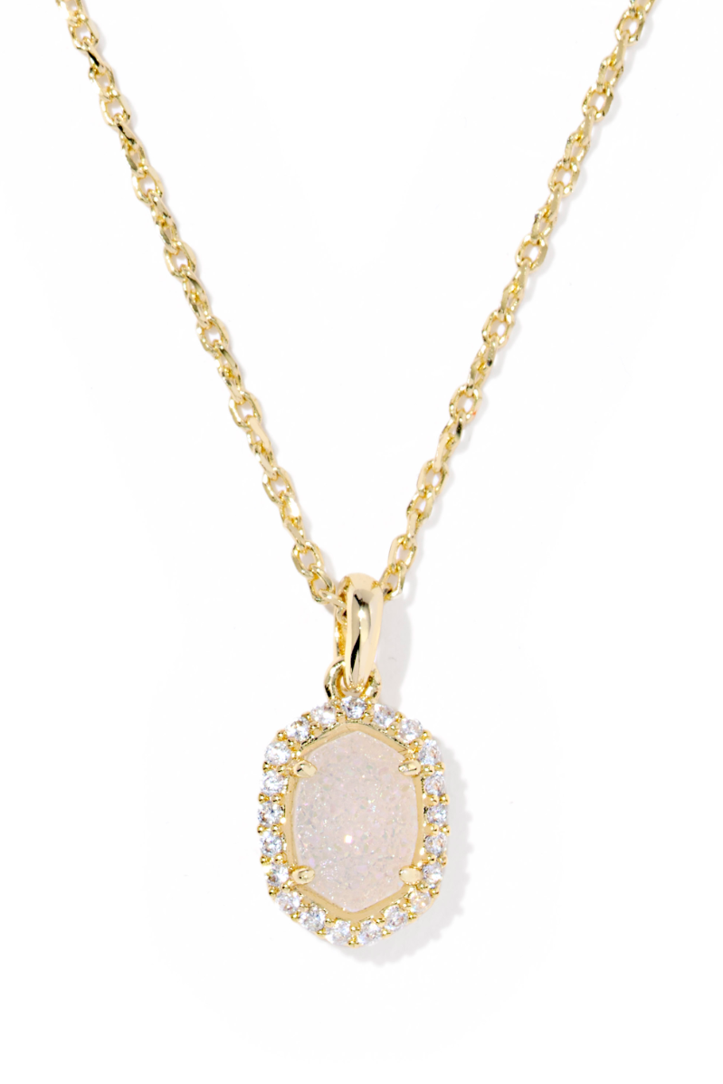 Daphne Crystal Frame Pendant Necklace - Gold/Iridescent Drusy