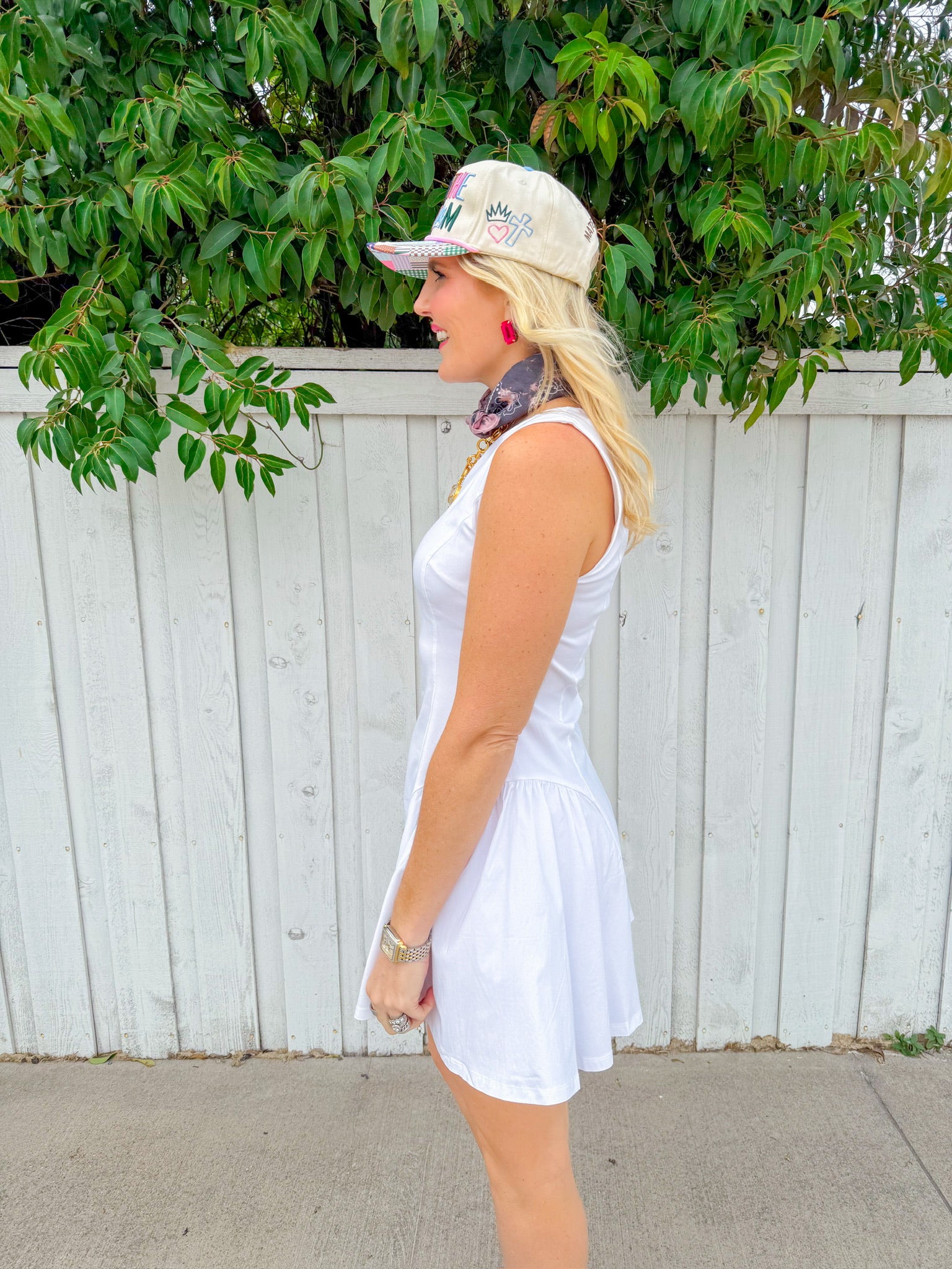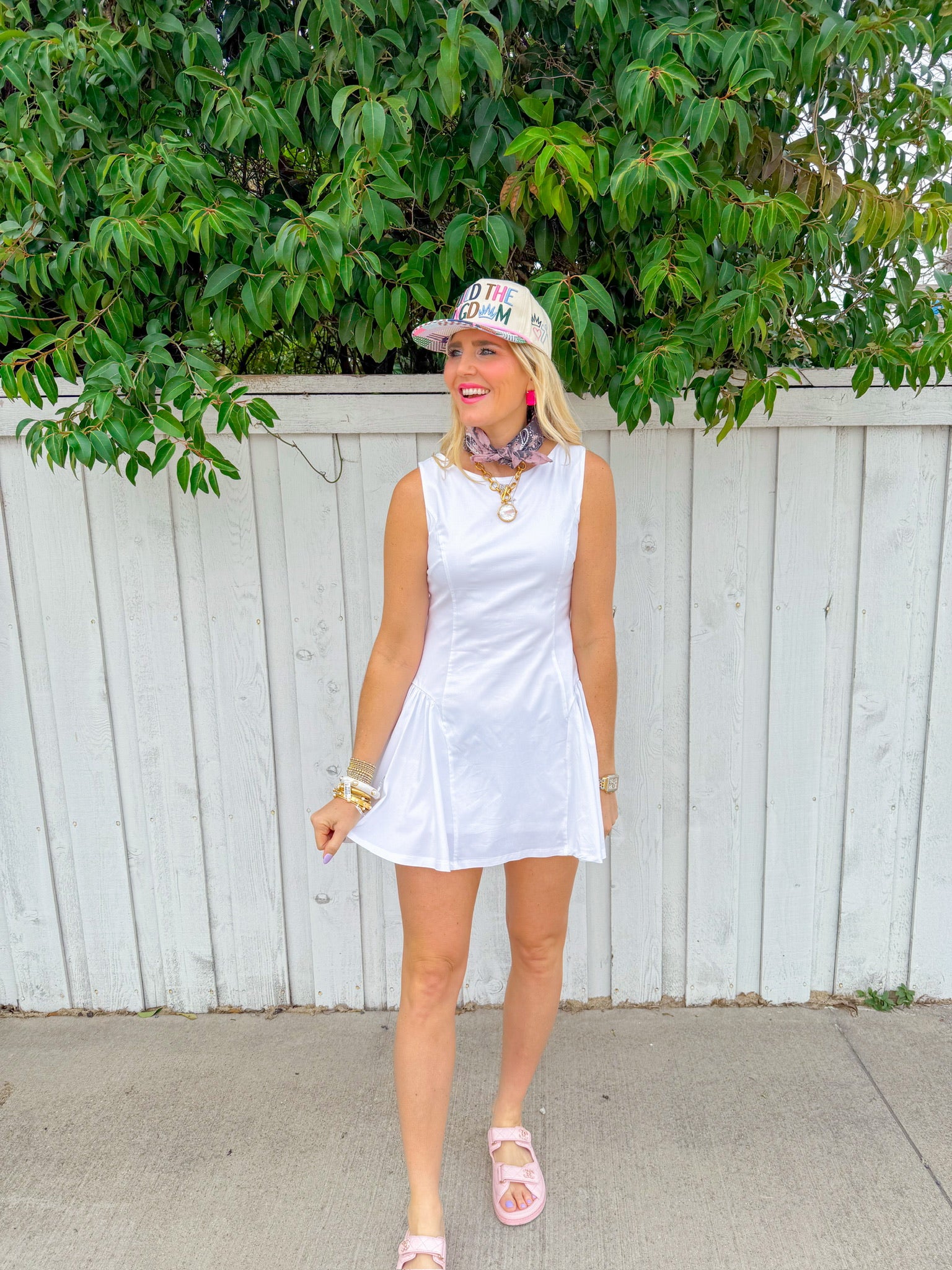 Crisp, clean, and ready for anything—this white mini dress is your new go-to for laid-back sophistication. Tank sleeves keep it breezy while a playful ruffle hem adds personality and movement.