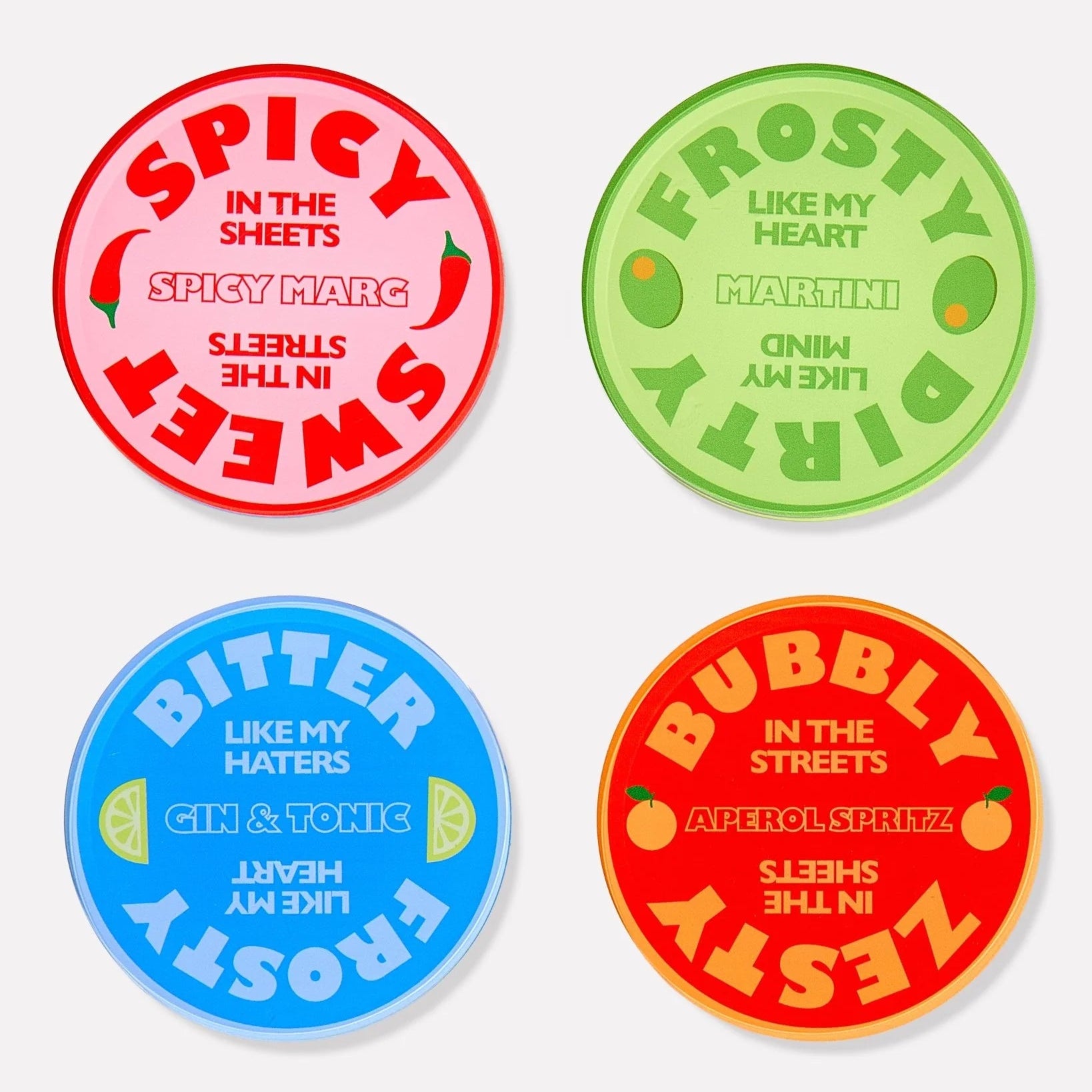 Cheers to all of your favorite drinks! These cocktail coasters are perfect for protecting your surfaces while sipping on your fav cocktail! Each coaster has a design on the front and the back- double the designs= double the fun! Drink up!