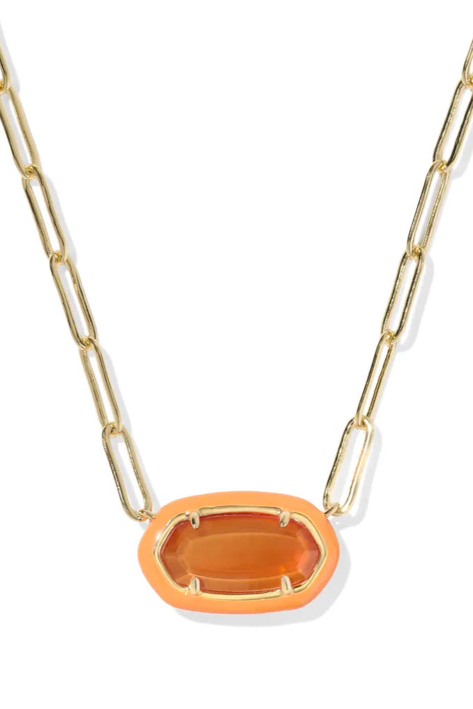 Elisa Enamel Frame Paperclip Necklace - Gold/Papaya Mother of Pearl