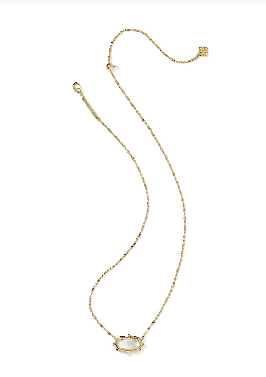 Our signature pendant gets an elevated update in the Elisa Scallop Frame Gold Short Pendant Necklace. Our iconic Elisa shape is reimagined with a scalloped border inspired by windswept grass and finished with hammered metal details for a bit of everyday flair.