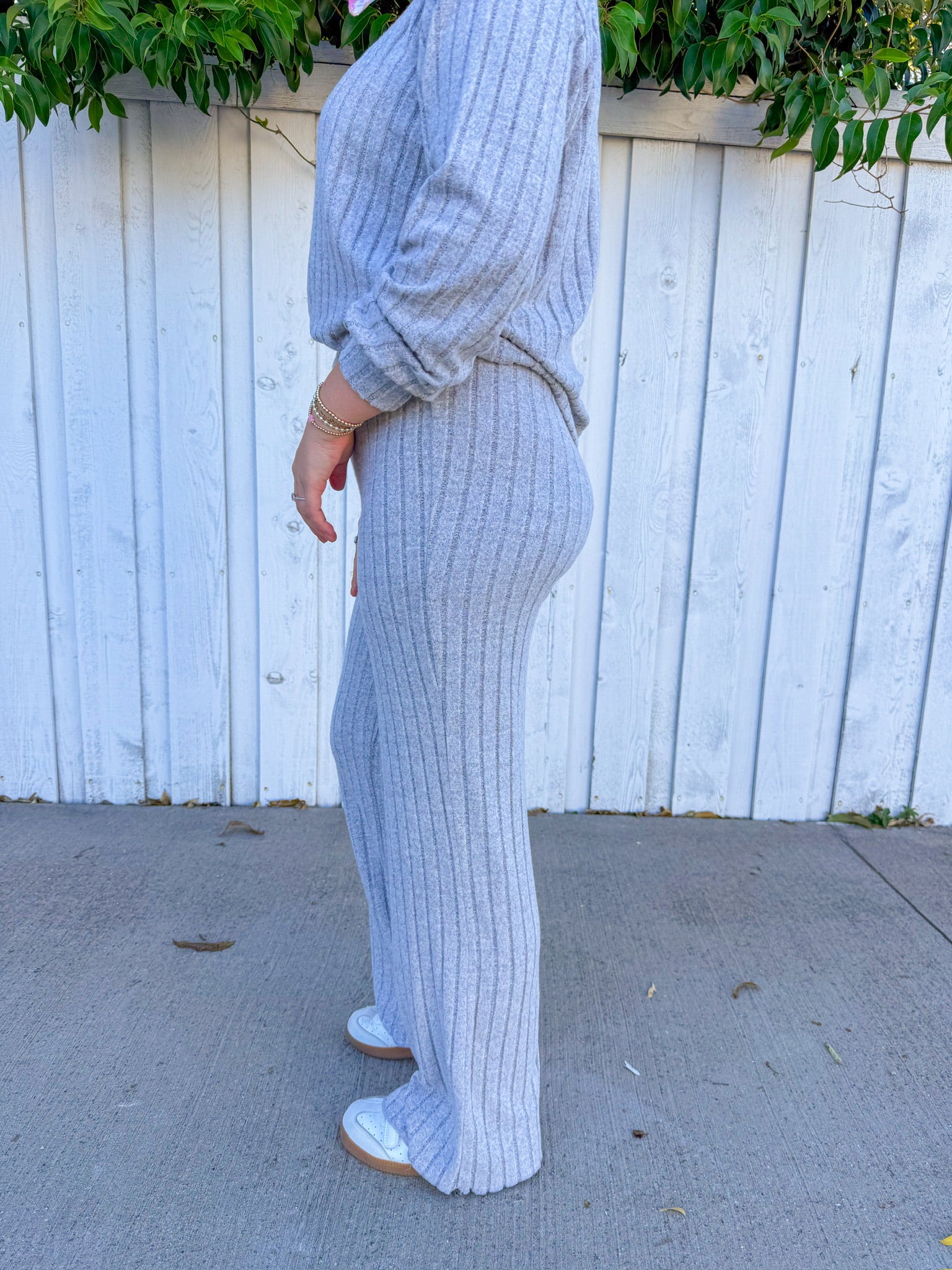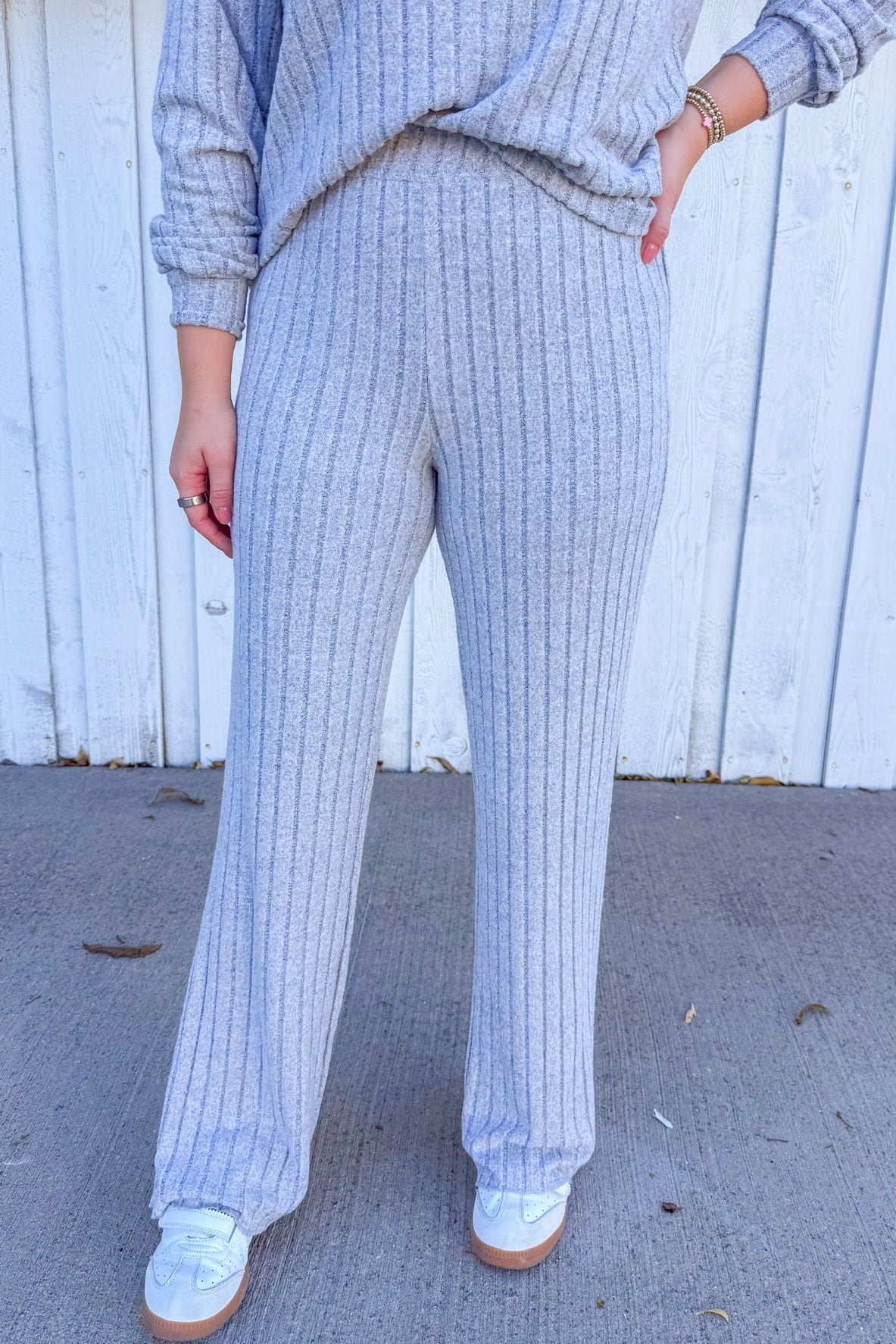 Slip into comfort with the Emma Rib Pants in Heather Grey. Crafted from a buttery-soft ribbed fabric, these pants move with you throughout your day—whether you're running errands or settling in for a cozy night in.