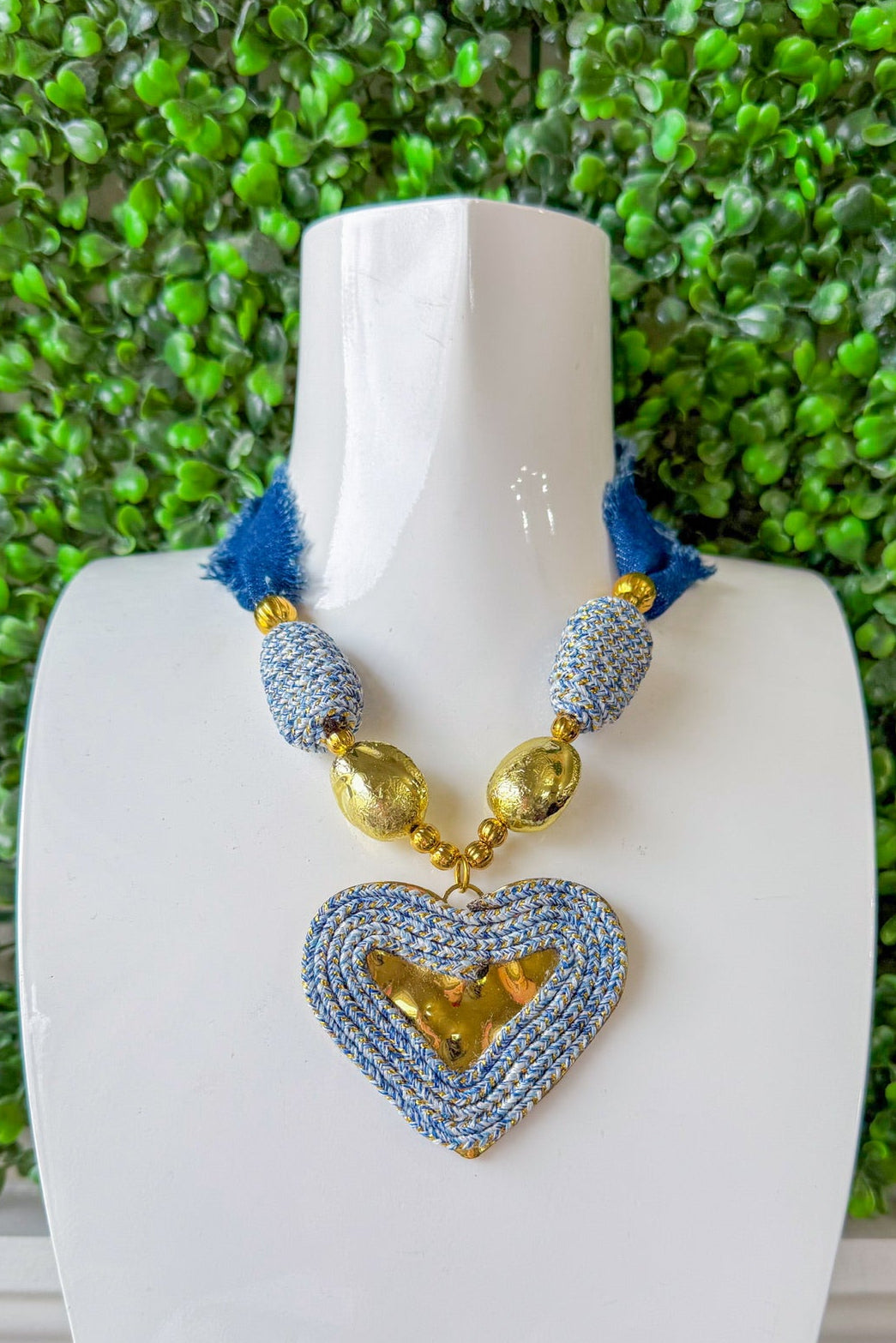 The denim fabric strap keeps things casual and comfortable, while the metallic details add just the right touch of shine. Perfect for layering or wearing solo, it's the kind of piece that works as hard as you do.