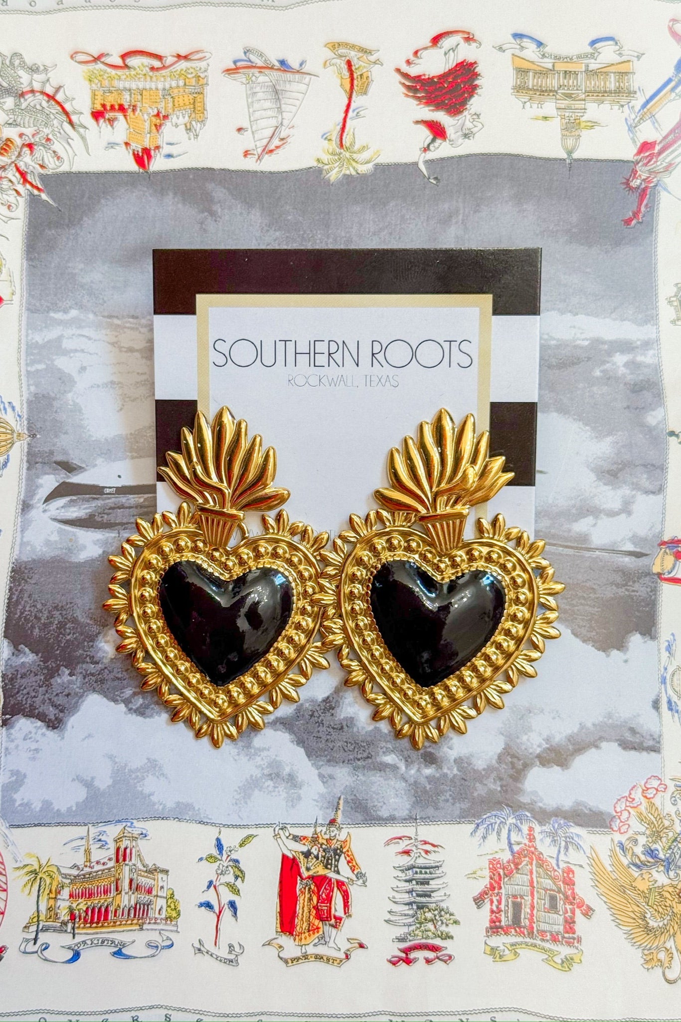 These Gilded Rue Earrings in gold and black bring a touch of sunshine to your look with their bold statement style.