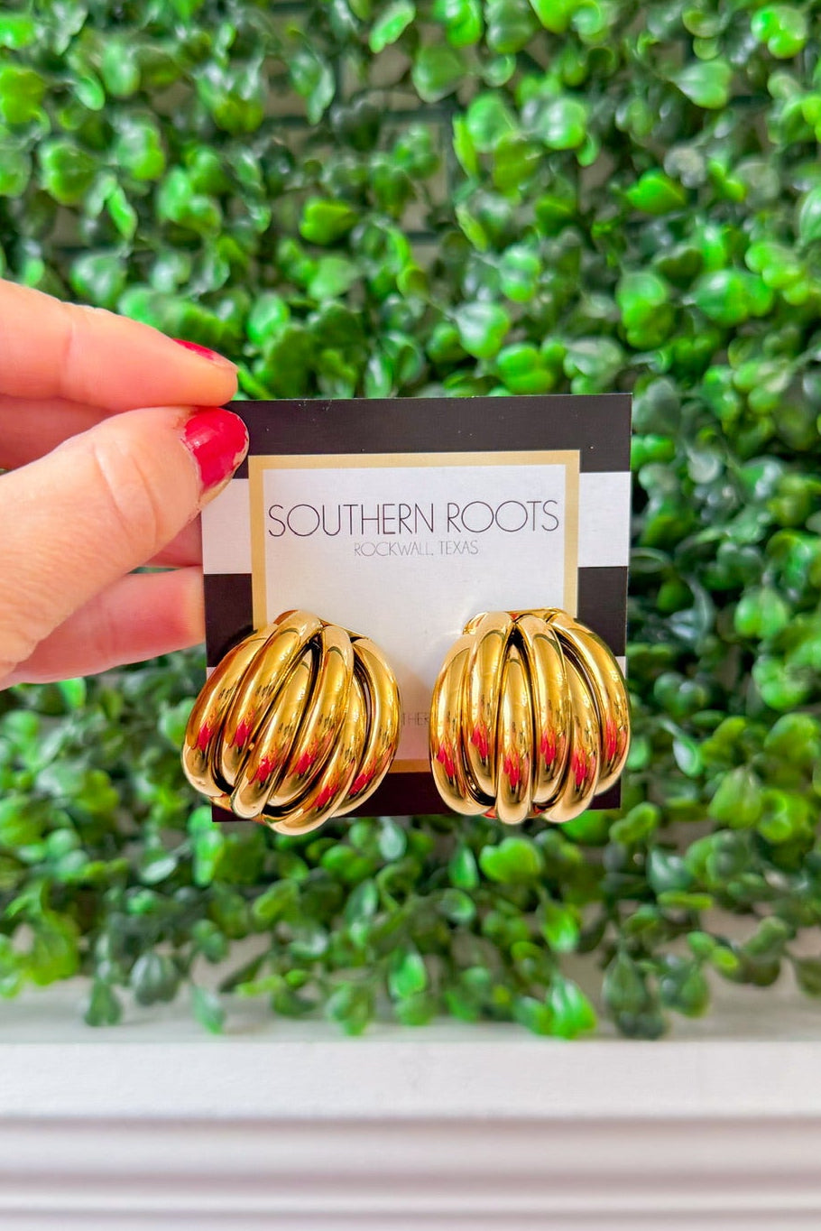 Make a bold move with these gold huggie statement earrings. Chunky, lustrous, and impossible to miss, they're the perfect way to elevate any look with effortless glamour.
