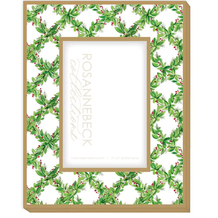 Holly w/ Berries Trellis Hand Painted 4x6 Frame